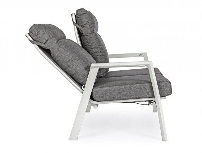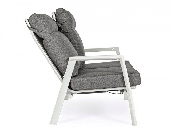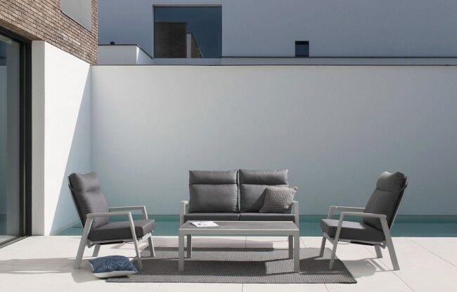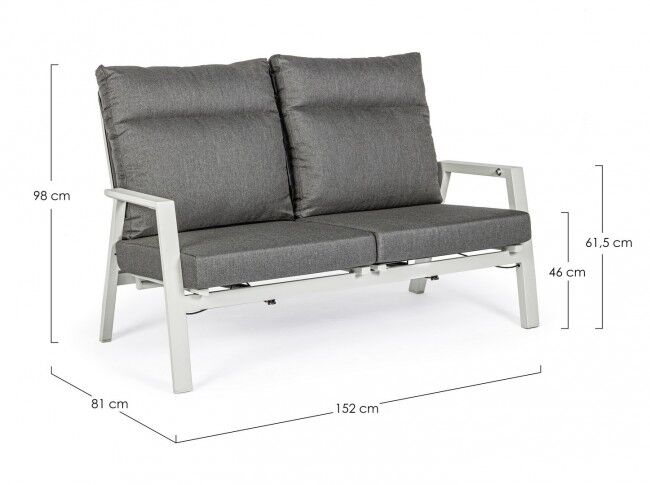 Proizvod: 2P SOFA RELAX KLEDI LUNAR Značajke proizvoda: 1. **Strukturni materijal**: Sofa ima aluminijsku strukturu koja je poznata po svojoj lakoći i otpornosti na koroziju. 2. **Praškasti premaz**: Aluminijska konstrukcija je plastificirana, što daje dodatnu zaštitu od vremenskih utjecaja i lijep, ujednačen izgled. Koristi se poliesterski premaz koji je postojan i otporan na razne vanjske utjecaje. 3. **Nasumični naslon**: Sofa ima nasumičan naslon, što znači da možete podesiti položaj naslona prema svojim željama za maksimalnu udobnost. 4. **Tekstilno sjedalo**: Sjedalo sofe izrađeno je od 1x1 textilene, posebne vrste tekstilne mreže poznate po svojoj izdržljivosti, otpornosti na vlagu i UV zrake te jednostavnom održavanju. 5. **Uklonjivi jastuci**: Sofa je opremljena jastucima koji se mogu vaditi, što omogućuje lakše čišćenje i održavanje. 6. **Olefinska tkanina**: Jastuci su izrađeni od olefinske tkanine (100% polipropilen), koja je izuzetno otporna na mrlje, plijesan i UV zrake, što osigurava dugi vijek trajanja i svjež izgled. Ova je sofa izuzetno pogodna za vanjsku upotrebu zbog svoje robusne konstrukcije, otpornosti na vremenske uvjete i udobnosti koju nudi s podesivim naslonom i kvalitetnim materijalima.