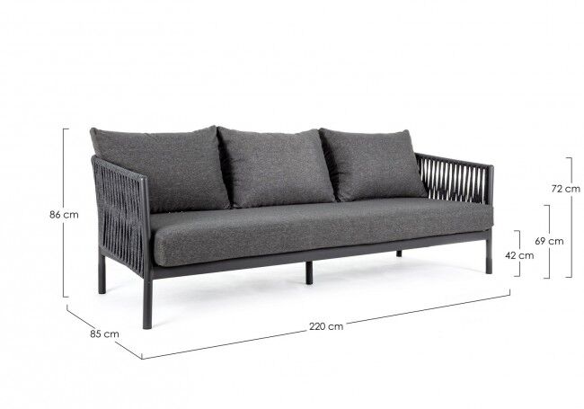 **Trosjed CC Florencia Anthracite WG21** **Opis proizvoda:** - **Struktura:** Trosjed je aluminijske konstrukcije, praškasto presvučen poliesterom, što osigurava dugotrajnost i otpornost na vremenske utjecaje. - **Tkanje:** Sjedalo i naslon ručno su tkani Tetoron konopcima (100% poliester), poznatim po svojoj izdržljivosti i otpornosti na UV zrake. - **Jastuci:** Jastuci za sjedenje i leđa opremljeni su uklonjivim presvlakama od vodootporne olefinske tkanine (100% polipropilen). Ova je tkanina iznimno otporna na mrlje, brzo se suši i lako se održava. **Prednosti:** - **Izdržljivost:** Aluminijska struktura i visokokvalitetne tkanine osiguravaju dug vijek trajanja sofe. - **Udobnost:** Mekani jastuci nude visoku razinu udobnosti, omogućujući ugodno sjedenje i opuštanje. - **Lako održavanje:** Uklonjivi poklopci olakšavaju čišćenje i održavanje. - **Otpornost na vremenske uvjete:** Materijali su odabrani da izdrže različite vremenske uvjete, što omogućuje vanjsku upotrebu tijekom cijele godine. **Prikladnost:** Idealan je za korištenje na terasama, vrtnim površinama ili balkonima, gdje želite stvoriti udoban i estetski atraktivan prostor za opuštanje i druženje. **Dimenzije:** Dimenzije sofe nisu navedene, ali uobičajena dužina trosjeda daje dovoljno prostora za udobno sjedenje troje osoba. Sofa CC Florencia Anthracite WG21 predstavlja savršenu kombinaciju funkcionalnosti, izdržljivosti i stila, što je čini izvrsnim dodatkom svakom vanjskom prostoru.