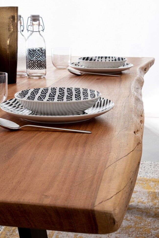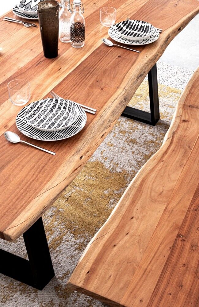 Stol Artur 200x95 unikatan je komad namještaja koji spaja prirodne materijale i robusnu konstrukciju. Odlikuju ga sljedeće karakteristike: 1. **Dimenzije**: Stol ima 200 cm dužine i 95 cm širine, što pruža dovoljno prostora za različite namjene. 2. **Ploča stola**: Izrađena je od visokokvalitetnog bagremovog drveta koje je poznato po svojoj izdržljivosti i jedinstvenom izgledu. Zbog ručne izrade, oblici i dimenzije drva su približni, što znači da će svaki stol biti malo drugačiji i samim tim unikatan. 3. **Noge**: Noge stola izrađene su od čelika i obojane epoksidnim prahom, što im daje dodatnu zaštitu od ogrebotina i korozije. Noge su sastavljene što omogućuje lakši transport i montažu. 4. **Zaključak**: Površina stola tretirana je poliuretanskom bojom koja ne samo da naglašava prirodnu ljepotu drva, već pruža i dodatnu zaštitu od svakodnevnog trošenja i prolijevanja. 5. **Jedinstvenost**: Zbog prirodnih svojstava drva i ručne izrade, svi se proizvodi mogu međusobno razlikovati, što daje dodatnu vrijednost svakom komadu pojedinačno. Stol Artur izvrstan je izbor za sve koji cijene spoj prirodnih materijala i modernog dizajna, a istovremeno žele imati unikatan komad namještaja u svom domu ili uredu.