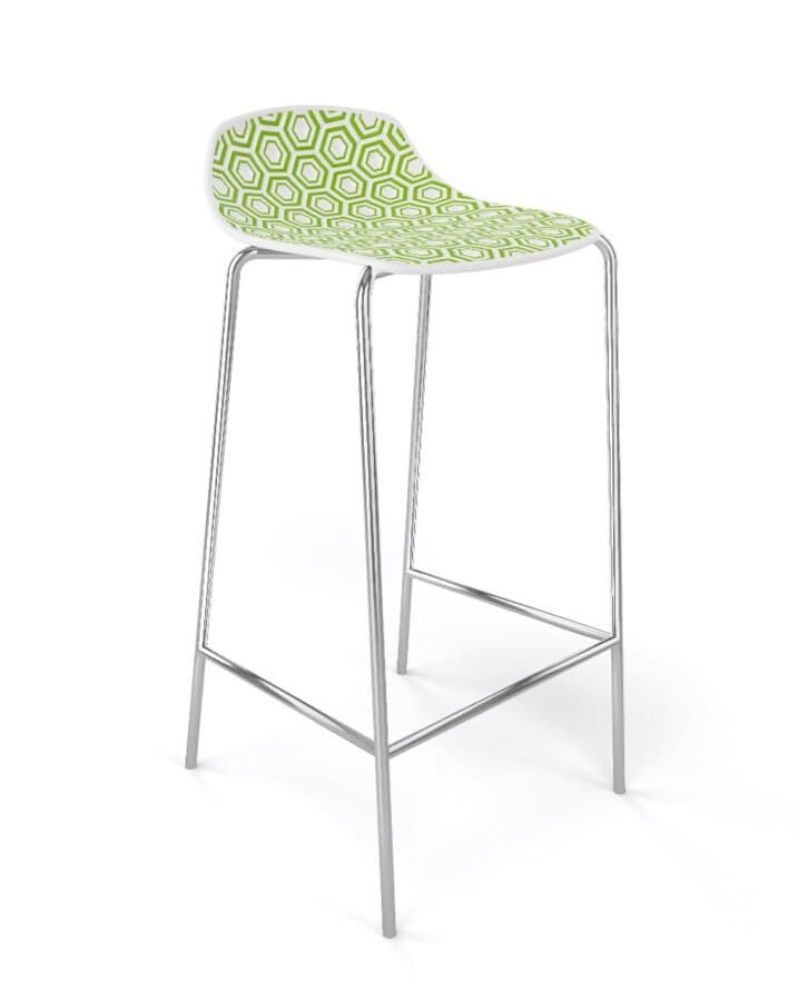 Jedinstven stil i sklad geometrijskog tkanja koji oblikuje površine i Alhambra stolicu čini jakom osobnošću i nesumnjivim osjećajem za estetski dizajn, zahvaljujući razvoju i korištenju inovativnog patentiranog proizvodnog sustava. Bar Alhambra stolica izrađena je s višebojnim tehnopolimernim sjedištem i nizom struktura koje su pogodne za rješenja, ideje i težnje za različite prostore i vrlo osobni ukus.
