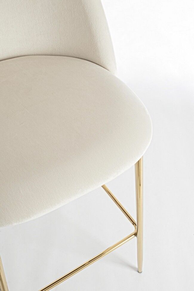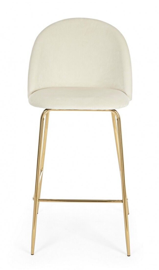 CARRY barska stolica od bijelog baršuna s čvrstim čeličnim nogama prekrivenim zlatnom kromiranom završnom obradom. Tapecirano baršunasto sjedalo s udobnom poliuretanskom pjenom za sofisticiran i moderan izgled. Marka Bizzotto.