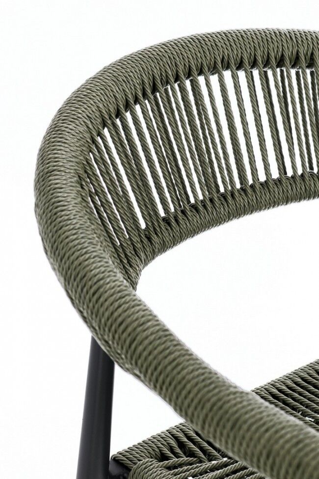 Barska stolica JANDIA antracit/zelene boje izrađena od aluminija i zelenog sintetičkog užeta može se slagati, izdržljiva je i savršena za vanjsku upotrebu u ugostiteljstvu.
