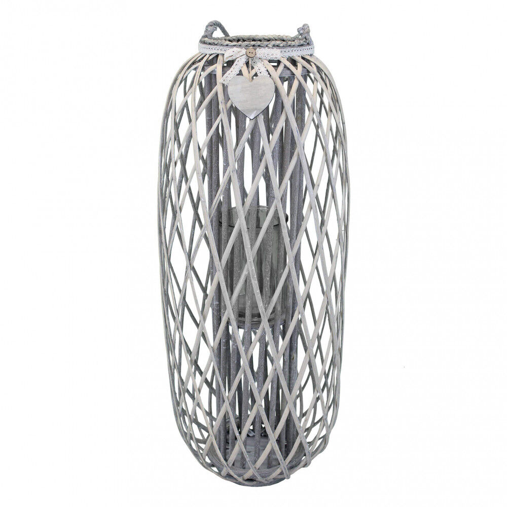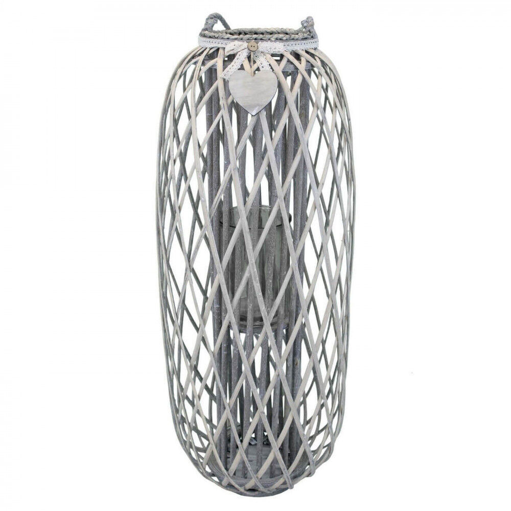 SIVI lampion od pruća i stakla s čipkastom vrpcom i ukrasom u obliku srca Dimenzije: cm Vrh Ø 21 x 106 h-Središnji Ø 40 x 106 h-Staklo Ø 15 x 21 h