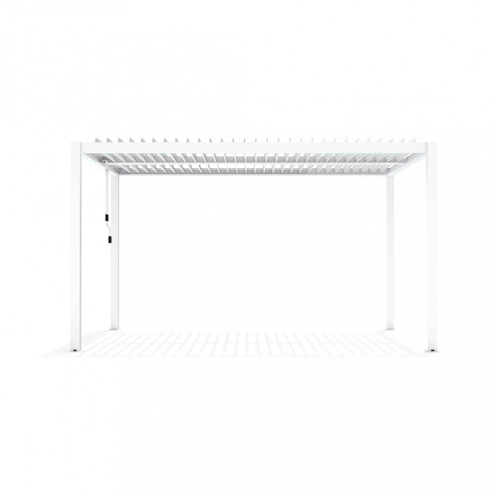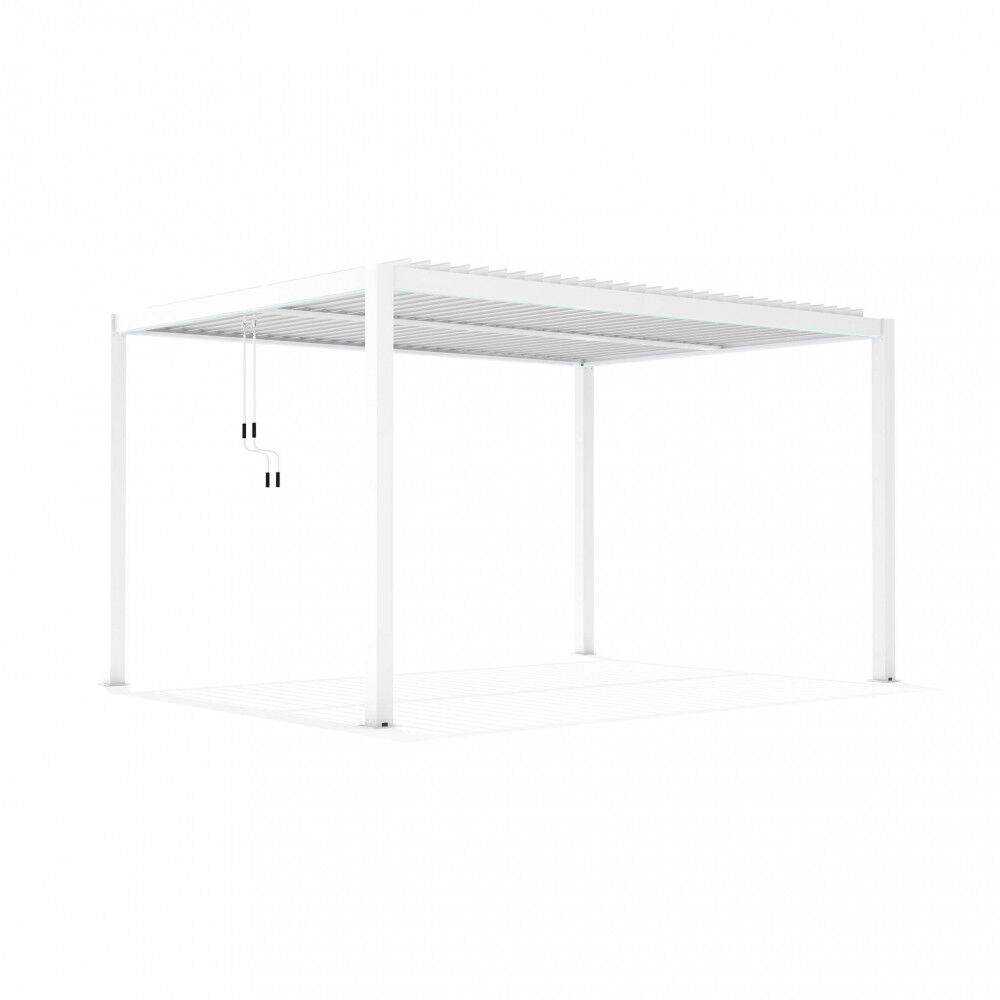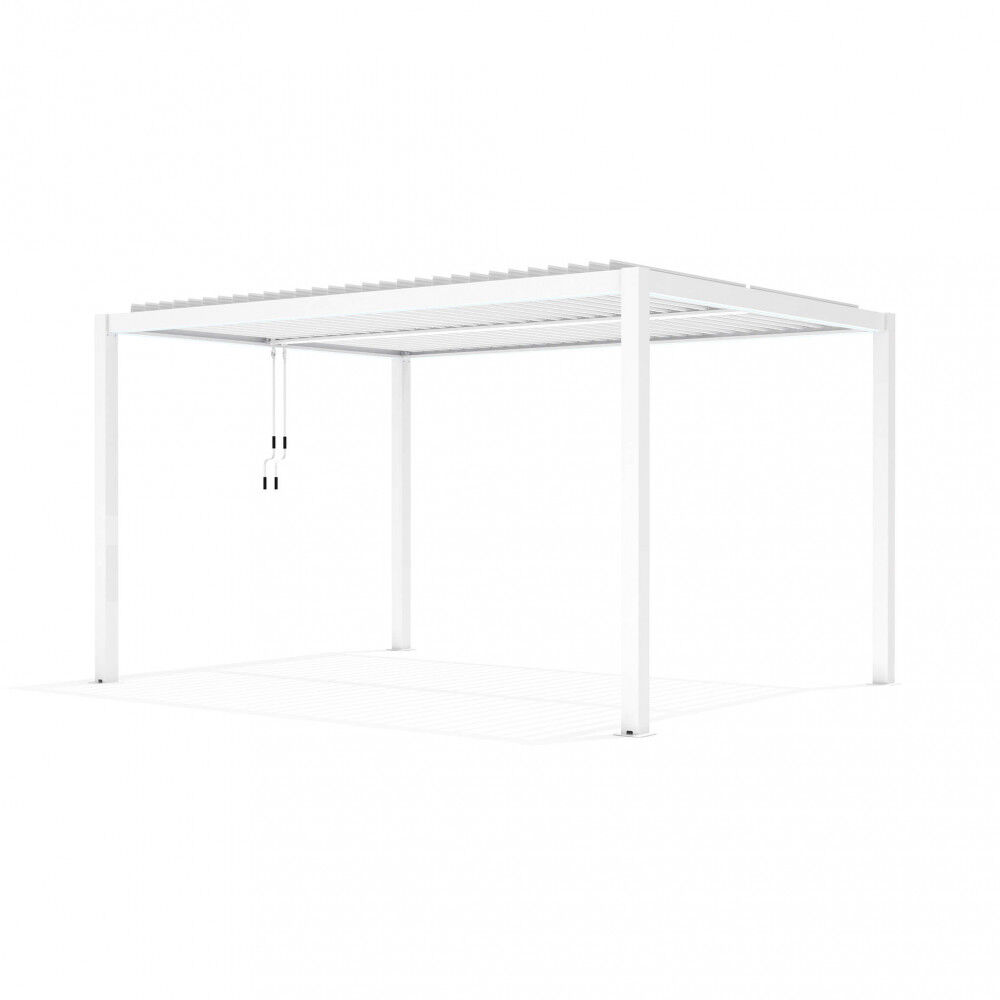 Bijela ili tamno siva ili smeđa aluminijska konstrukcija s efektom drva, ručno podesive suncobrane, letvičasti pokrov otporan na sve vremenske uvjete Dimenzije: m 3 x 4 x 2,5 h