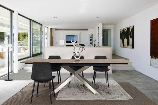 Stol ARZACHEL spaja moderan dizajn i visoku funkcionalnost, izrađen je od nehrđajućeg čelika (struktura) i keramičkih ploča (5 mm) s bazom od kaljenog stakla (8 mm) za dodatnu čvrstoću i eleganciju. Stol je razvlačiv i pogodan za 6-8 osoba , što omogućuje prilagodbu prema potrebama prostorije ili događaja. Noge moraju biti sastavljene , što osigurava laku montažu.