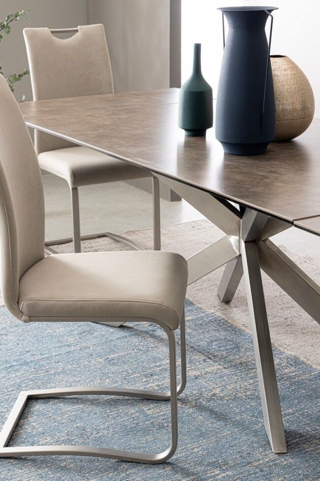 ARZACHEL produljivi stol s nehrđajućom strukturom i keramičkom pločom za moderne prostore. Dimenzije 160–240×90×76 cm. Idealno za blagovaonice ili višenamjenske prostorije.