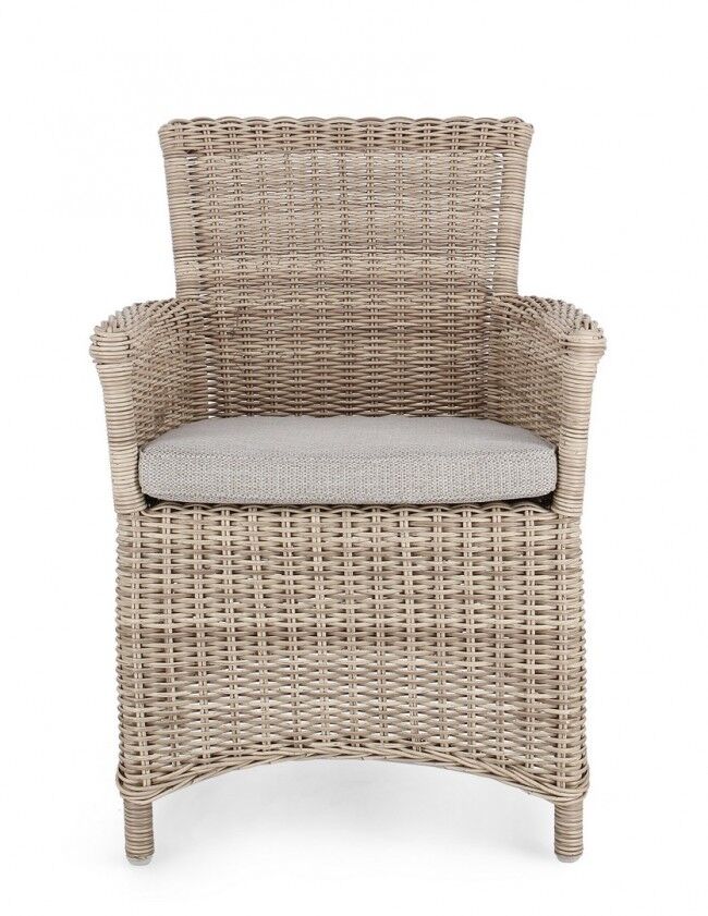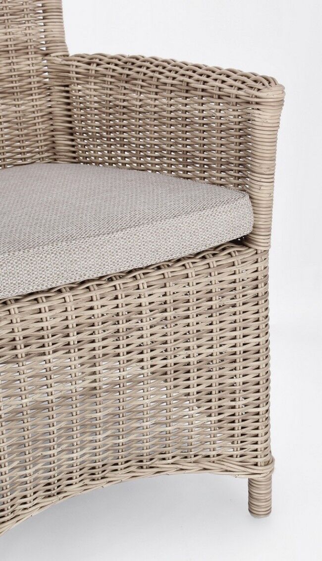 2. **Tkanje iz sintetičnih vlaken (okrogle 5,3 mm)**: Sedežni in naslonjalni del stola sta izdelana iz sintetičnih vlaken, ki so ročno prepleteni. Sintetična vlakna so izjemno odporna proti UV-žarkom, vlagi in temperaturnim spremembam, kar zagotavlja vzdržljivost in enostavno vzdrževanje. Premer vlaken je 5,3 mm, kar prispeva k trdnosti in stabilnosti tkanja.