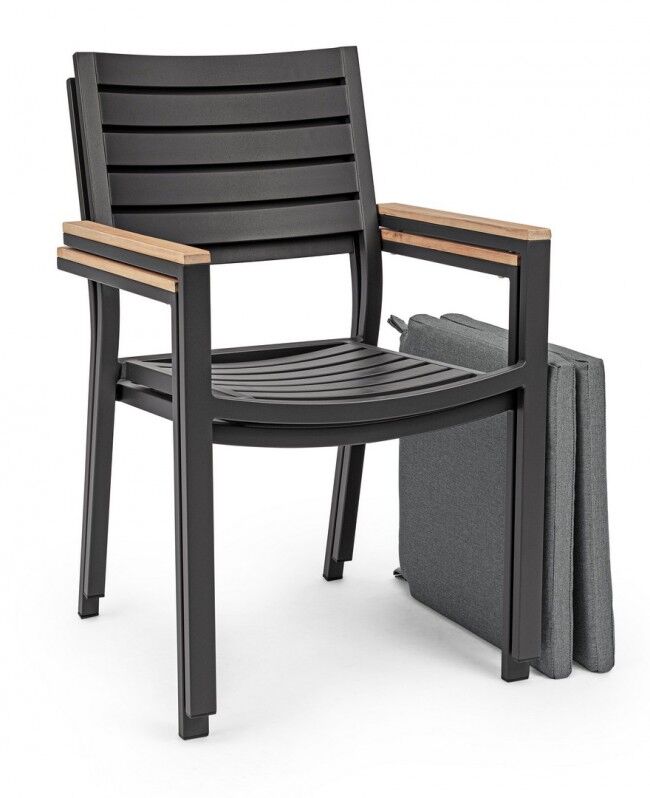 Stolica Belmar spaja prirodan izgled i modernu estetiku u jednom. Izrađena je od visokokvalitetnih materijala u prirodnoj antracit boji što osigurava trajnost i udobnost u korištenju. Njegov elegantan dizajn lijepo se uklapa u svaki unutarnji ili vanjski prostor.