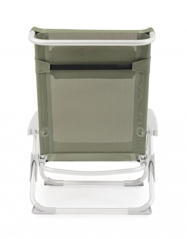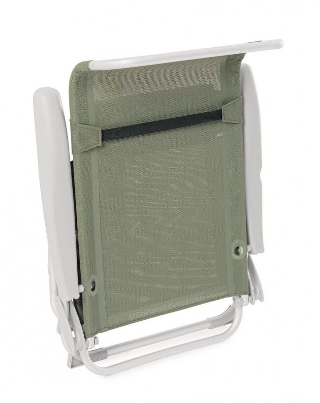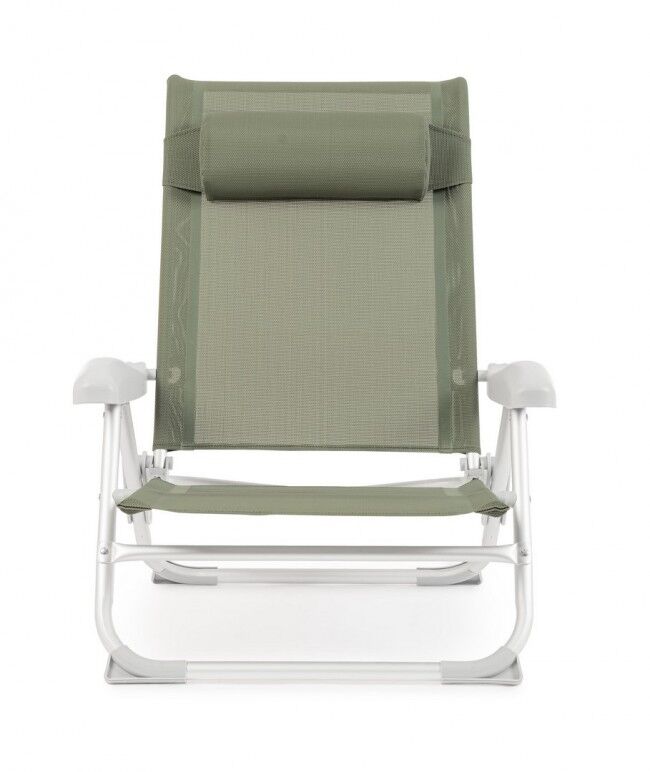 Sklopiva fotelja CAYO u maslinastoj boji je lagana i izdržljiva aluminijska stolica s tekstilom, idealna za vanjsku upotrebu. Podesivi naslon za glavu i sklopivi dizajn. Dimenzije: 57x85x73 cm. Težina: 2,9 kg.
