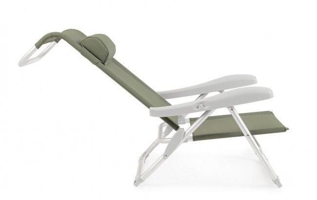 Sklopiva fotelja CAYO u maslinastoj boji je praktična i elegantna stolica namijenjena za opuštanje na otvorenom. Njegov aluminijski okvir osigurava lakoću, izdržljivost i otpornost na vremenske uvjete, dok su sjedalo i naslon izrađeni od visokokvalitetnog tekstila. Stolica uključuje podesivi naslon za glavu za maksimalnu udobnost. Sklopivi dizajn olakšava spremanje i nošenje. Maslinasta boja daje prirodan i opuštajući izgled prikladan za svaki vanjski prostor.