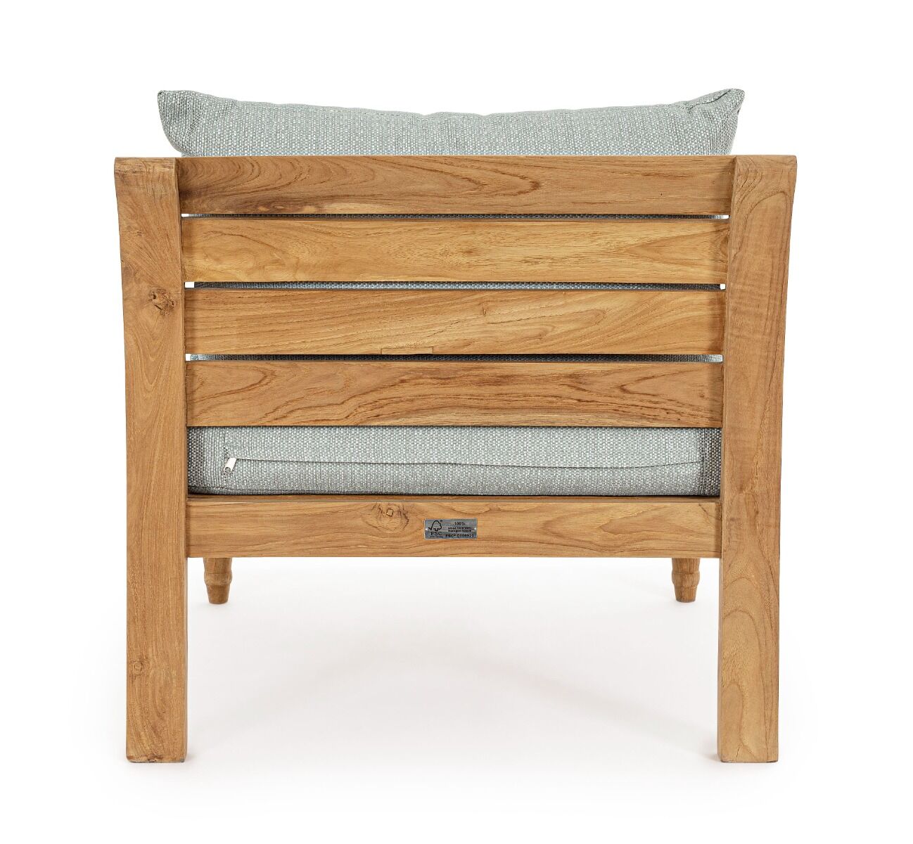 - Materijal: 100% tikovina (FSC certifikat) i vodootporna tkanina Sunproof Olefin (100% polipropilen).