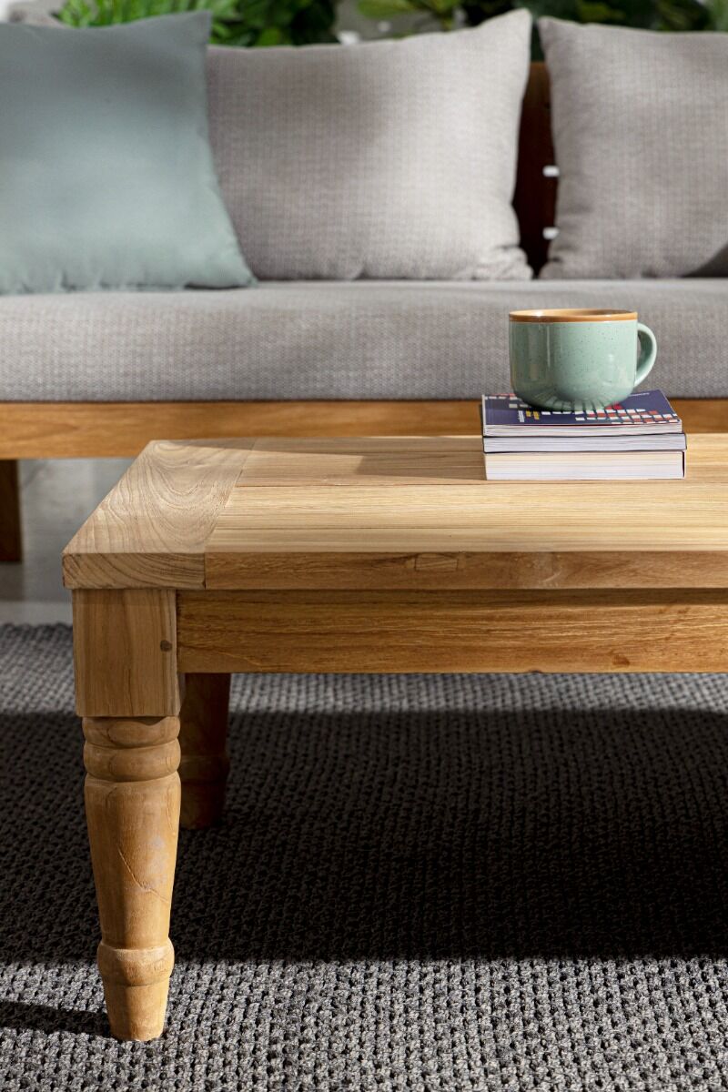 Stolić za kavu KARUBA izrađen je od 100% FSC certificiranog tikovine, što potvrđuje njegovo održivo podrijetlo. Uz prirodni rustikalni završetak, održava autentičan izgled drva, dodajući jedinstvenost i prirodnu ljepotu svakom komadu. Stolić za kavu ima karakteristike pravog drva tikovine, kao što su drveni tipli i prirodne pukotine i nepravilnosti koje se mogu pojaviti tijekom vremena. Zbog sadržaja prirodnih ulja u drvu tikovine, preporuča se korištenje stola u zatvorenim ili zaštićenim vanjskim prostorima, gdje nije izložen izravnoj sunčevoj svjetlosti i vremenskim utjecajima.