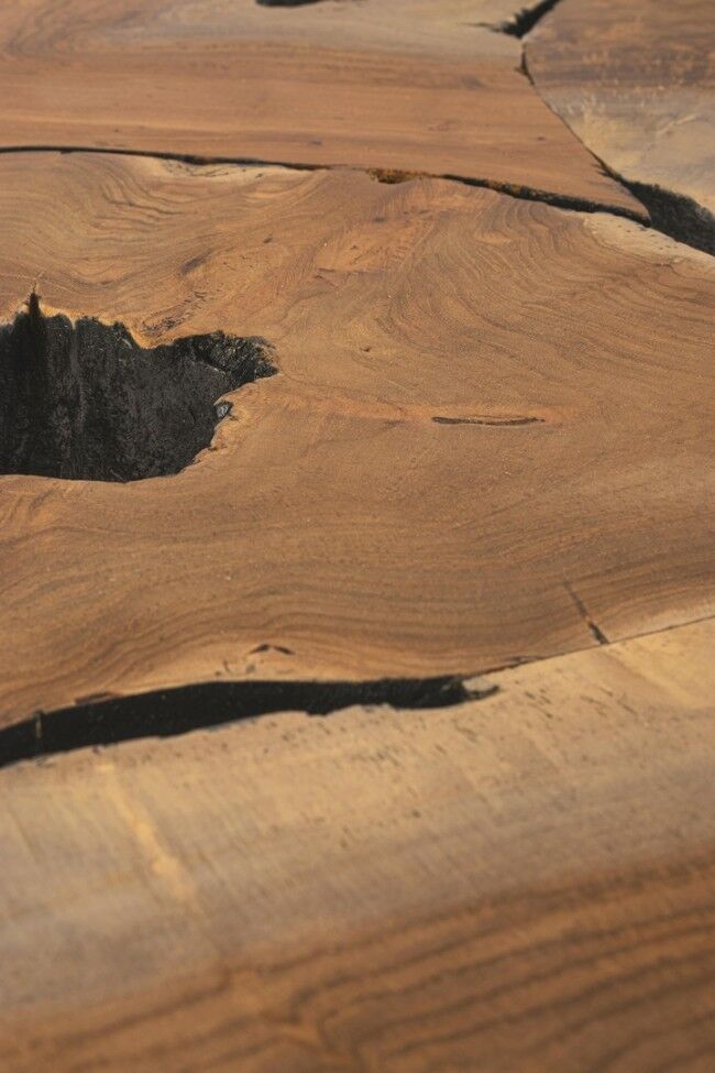 Elwood Miza D40 je vrhunski proizvod koji se ističe svojom jedinstvenom estetikom i kvalitetom izrade, jer je izrađen od izvornog korijena tropskog tikovine. Ovaj stol ima prirodan i bezvremenski izgled koji je istovremeno elegantan i robustan. Drveni dio stola je obrađen slojem nitroceluloze, što osigurava lijep izgled i dugotrajnu zaštitu drva. Nitrocelulozni premaz štiti površinu od fizičkih oštećenja i utjecaja okoline, a pritom čuva prirodnu ljepotu drva. Noge stola izrađene su od lakiranog čelika, što doprinosi modernom kontrastu s organskim oblikom drvene površine. To također osigurava stabilnost i izdržljivost stola, a istovremeno omogućuje jednostavno održavanje i čišćenje. Budući da su drveni dijelovi izrađeni od prirodnog korijena tikovine, svaki stol ima jedinstven oblik i dimenzije, što znači da se svaki gotov proizvod malo razlikuje od ostalih. Upravo ta jedinstvenost čini svaki Elwood Mizo D40 posebnim i izvanrednim. Noge stola se isporučuju zasebno i potrebno ih je sastaviti, što omogućuje lakši transport i skladištenje prije sastavljanja. Svojom sofisticiranom kombinacijom prirodnog drva i modernog čelika, te ručnom izradom svakog komada drva, Elwood Table D40 idealan je izbor za sve koji cijene jedinstvene, kvalitetne i dizajnerski savršene komade namještaja.