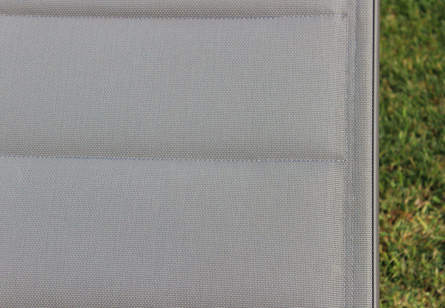 Struktura od aluminija obojenog BIJELO, TAUPE, TAUPE ili ANTRACIT Podstavljeni tekstil TAUPE, CRNI na antracit Dimenzije: cm 198 x 61 x 34/95 h