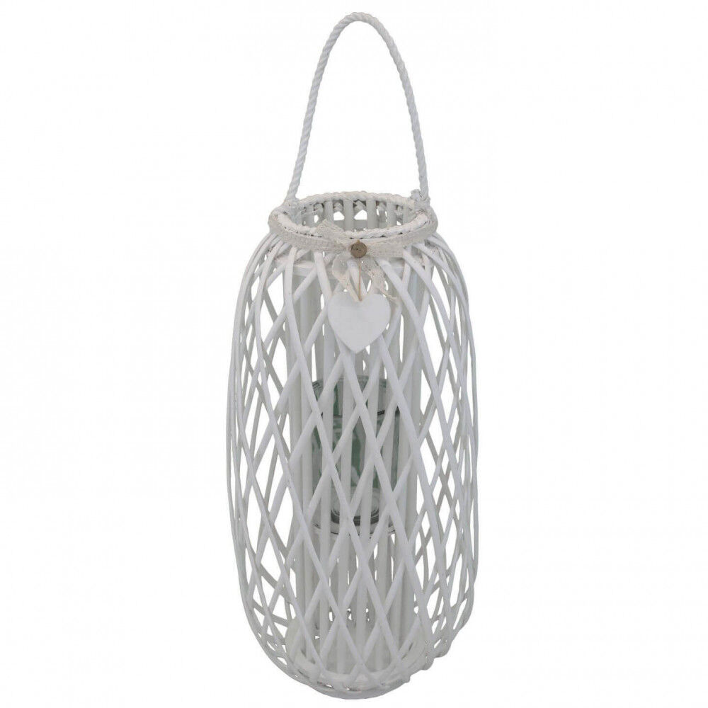 BIJELI lanterna od pruća i stakla s čipkastom vrpcom i ukrasom u obliku srca Dimenzije: cm Vrh Ø 20 x 86 h-Središnji Ø 38 x 86 h-Staklo Ø 15 x 21 h