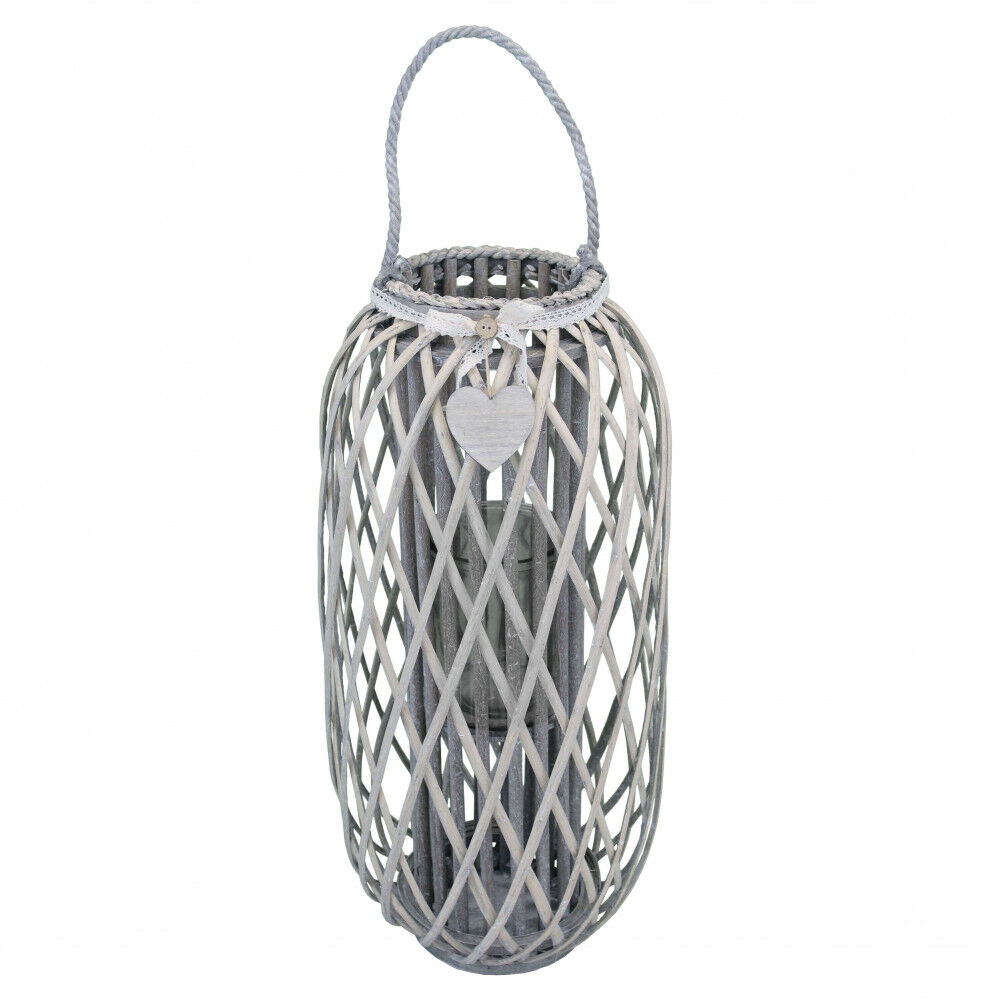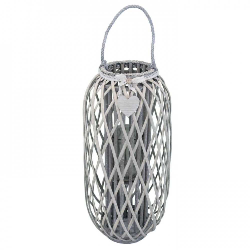 SIVI lampion od pruća i stakla s čipkastom vrpcom i ukrasom u obliku srca Dimenzije: cm Vrh Ø 20 x 86 h-Središnji Ø 38 x 86 h-Staklo Ø 15 x 21 h