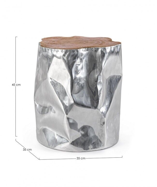 Stolić HAMMER 35x35 jedinstveni je industrijski stol s aluminijskom konstrukcijom i površinom od originalnog korijena tikovine. Svaki je komad unikatan, s prirodnim drvenim oblicima i malo drugačijim mjerama. Završen je nitroceluloznim premazom za dodatnu zaštitu i izdržljivost. Idealno za ljubitelje industrijskog dizajna.