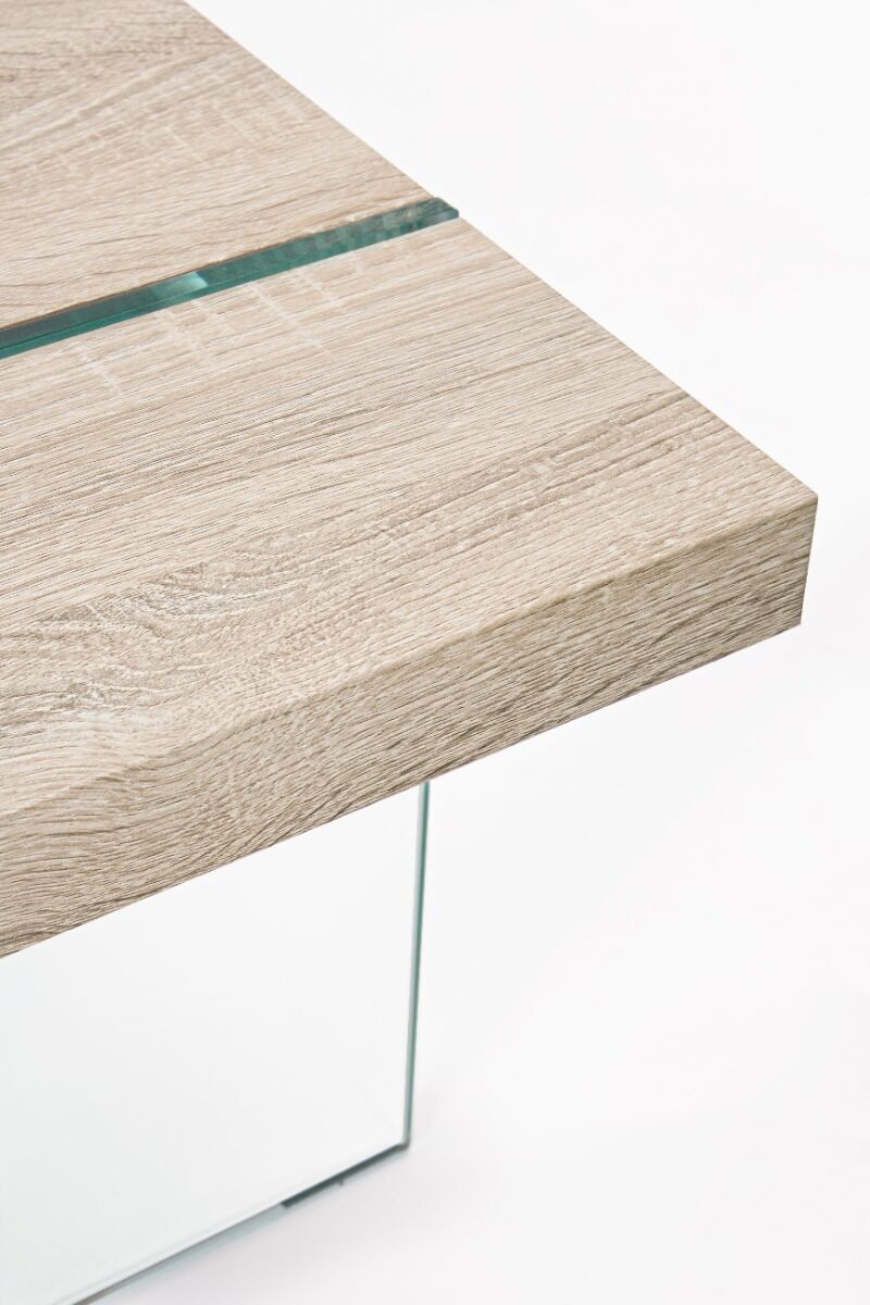 TOM stolić za kavu unosi eleganciju i moderan dizajn u svaku prostoriju. Pravokutni oblik i kombinacija materijala stvaraju jedinstven komad koji će se istaknuti u vašem dnevnom boravku. Stol ima noge od 12 mm kaljenog stakla koje su prozirne i daju moderan štih te površinu od MDF materijala presvučenu melaminskom folijom s efektom drveta. To osigurava trajnost i jednostavnost održavanja, a istovremeno zadržava prirodan i topao izgled.
