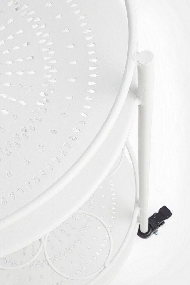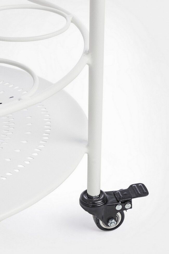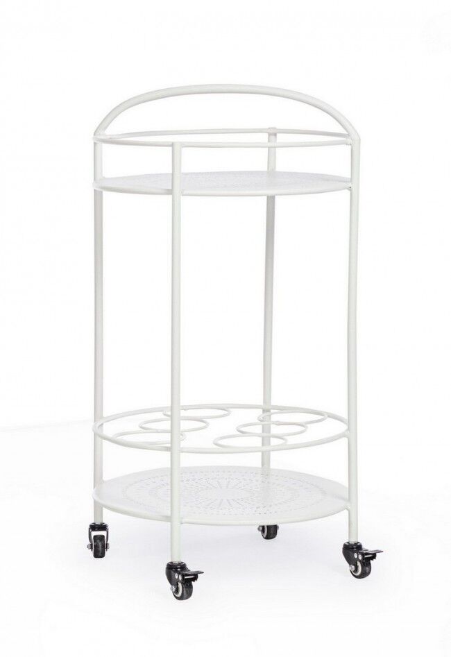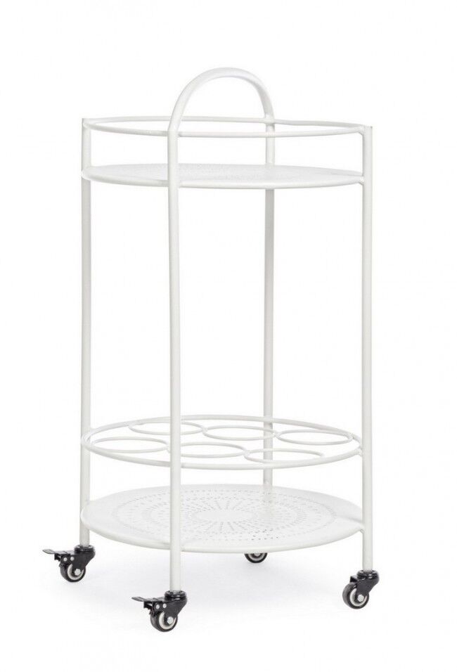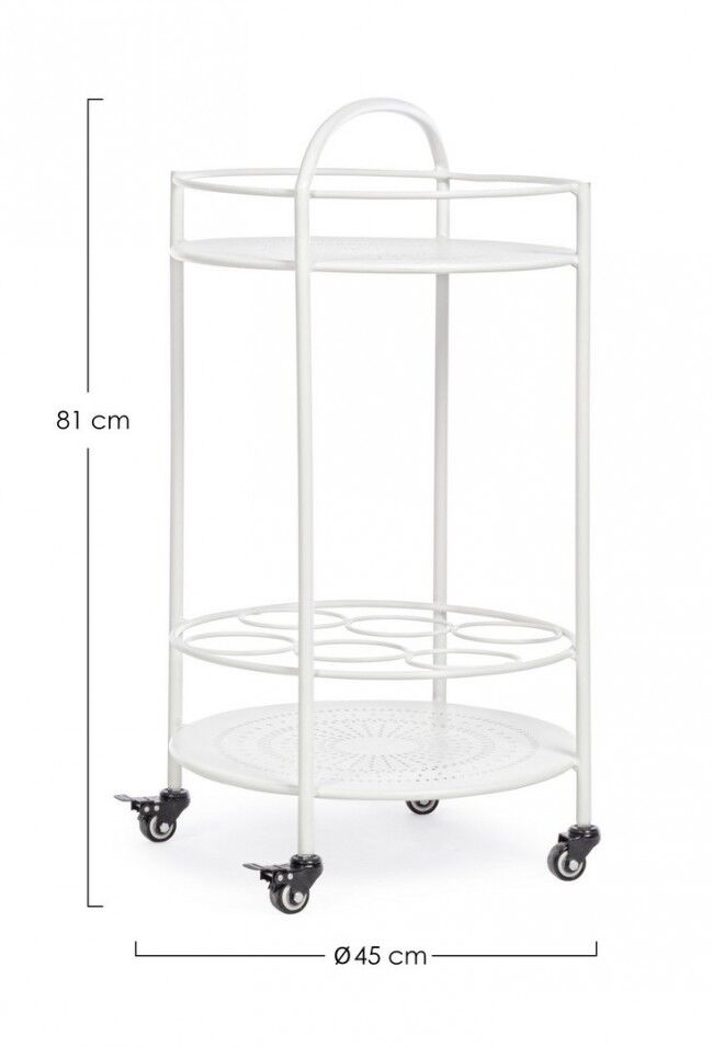 Kolica za posluživanje BURTON bijela s jednostavnom i elegantnom čeličnom konstrukcijom u bijeloj boji i mat završnici. Idealan za posluživanje i skladištenje, opremljen držačem za boce i plastičnim kotačićima.