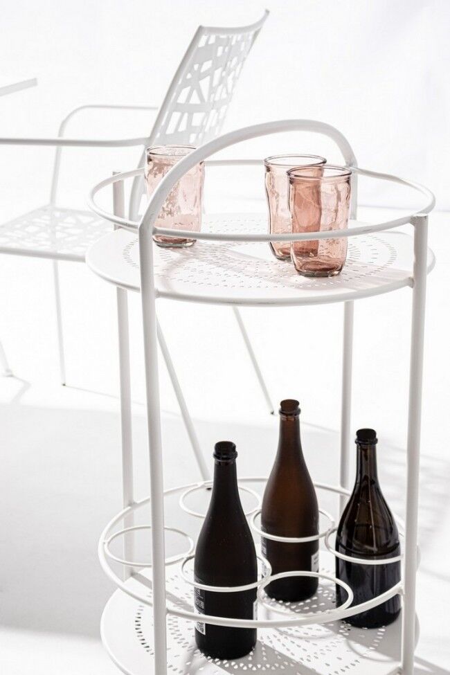 Opis: BURTON bijela kolica za posluživanje idealan su izbor za elegantno i praktično posluživanje i skladištenje u vrtu, na terasi ili u zatvorenom prostoru. Izrađen od izdržljivog čelika obloženog prahom s mat završnom obradom, nudi sofisticiran izgled i funkcionalnost. Opremljen je držačem za boce i plastičnim kotačićima za jednostavno premještanje.