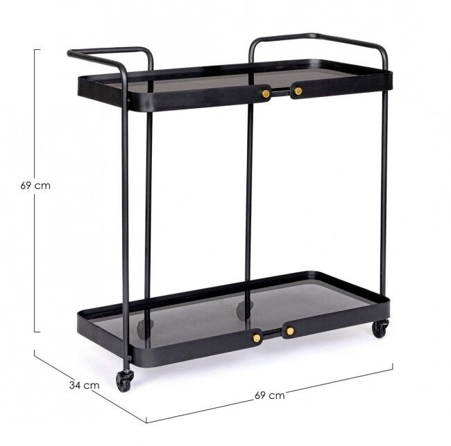 Kolica za posluživanje ZEINA L modernog dizajna, čelične konstrukcije i površina od kaljenog stakla. Elegantan i funkcionalan komad namještaja, idealan za posluživanje u blagovaonici, dnevnom boravku ili na terasi.