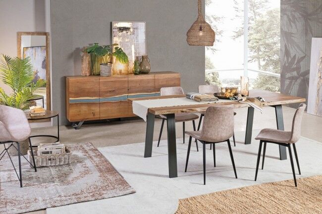 Komoda 4A ARON elegantna je kombinacija bagremovog drva i čelika s industrijskim detaljima. S dimenzijama od 198x43x85 cm i prirodnim stilom, savršen je za moderan dom.
