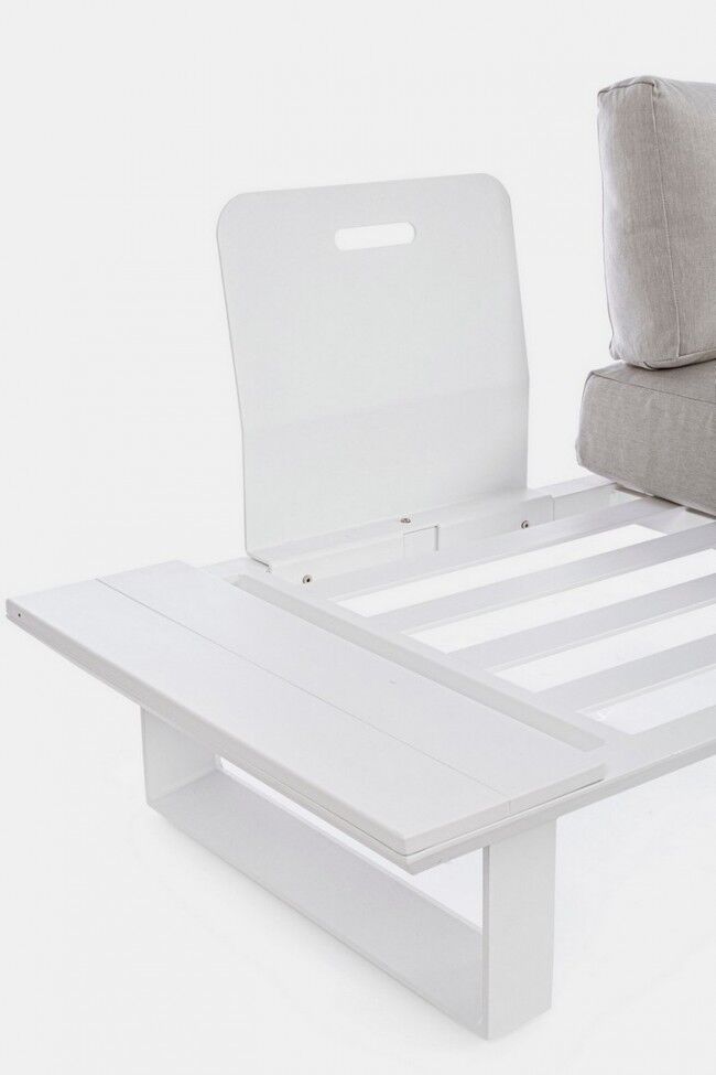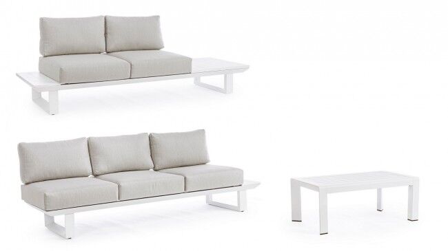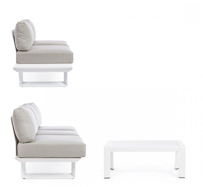 KONNOR BIJELA KUTNA DNEVNA GARNITURA CX21 elegantan je i funkcionalan izbor za vaš vanjski ili unutarnji prostor. Ključne značajke proizvoda uključuju aluminijsku konstrukciju koja je praškasto presvučena poliesterskim premazom za dodatnu zaštitu i izdržljivost. Set je dizajniran s uklonjivim jastucima od vodoodbojne olefinske tkanine (100% polipropilen), što omogućuje jednostavno održavanje i udobnost. Noge i naslon se jednostavno sastavljaju što omogućuje brzu i jednostavnu montažu i prilagodbu prema potrebama vašeg prostora. Ova moderna kutna garnitura idealna je za opuštanje i druženje jer spaja udobnost, funkcionalnost i estetski izgled.