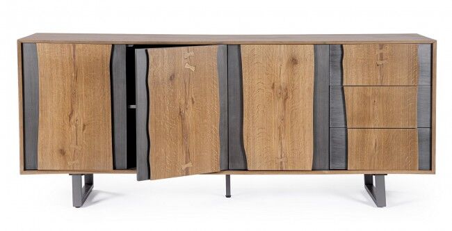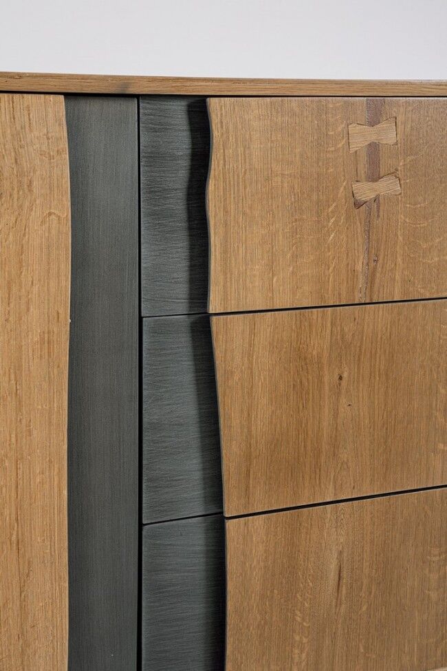 Elegantna i funkcionalna komoda 3A-3C GARWOOD od hrastovog furniranog MDF-a s prirodnim finišem, antracit vratima i ladicama te čeličnim nogama. Idealna za moderne unutarnje prostore.