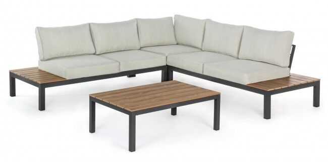 Kutna garnitura "CC Elias" u antracit boji je elegantan i funkcionalan izbor za vaš vanjski prostor. Kombinacijom moderne estetike i izdržljivih materijala predstavlja savršen dodatak svakoj terasi ili vrtu. **Karakteristike proizvoda:** - **Praškasto lakirana aluminijska konstrukcija:** Struktura garniture izrađena je od aluminija koji je praškasto presvučen poliesterom što pruža dodatnu zaštitu od vremenskih utjecaja i osigurava dug vijek trajanja. - **Poyles stranice i ploča stola:** Koristi se kompozitni materijal koji vizualno podsjeća na drvo. To je postojana kombinacija 90% polistirena i 10% SBS boje u nijansi tikovine. - **Uklonjivi jastuci:** Set je opremljen uklonjivim jastucima od poliesterske tkanine koji se lako održavaju i čiste. - **Vijci od pocinčanog čelika:** Za dodatnu stabilnost i izdržljivost koriste se vijci od pocinčanog čelika. - **Za sastavljanje:** Set dolazi sa svim potrebnim komponentama i jasnim uputama za jednostavno sastavljanje. Set je idealan izbor za sve koji traže kombinaciju modernog dizajna, udobnosti i izdržljivosti.