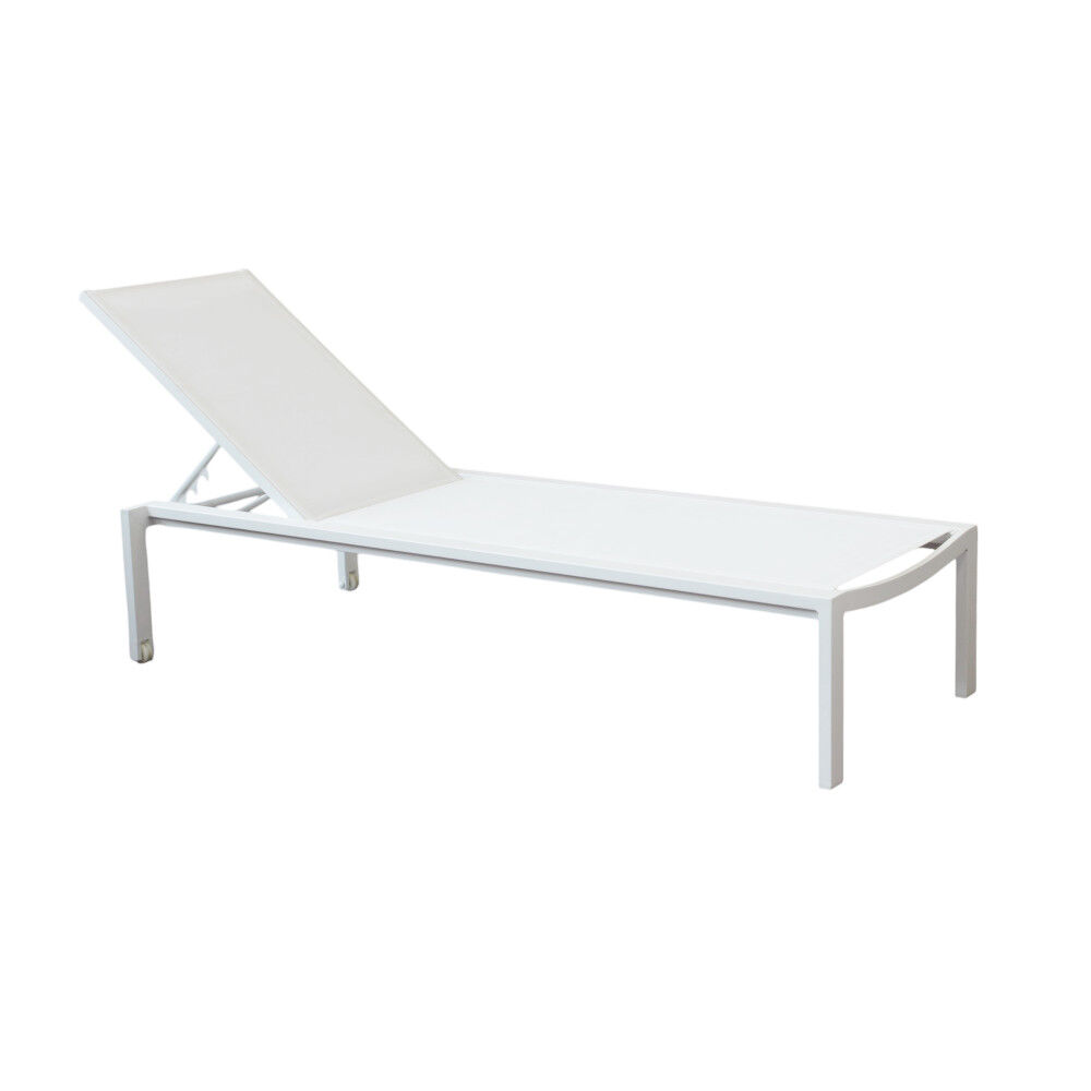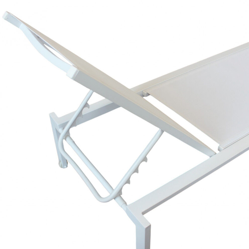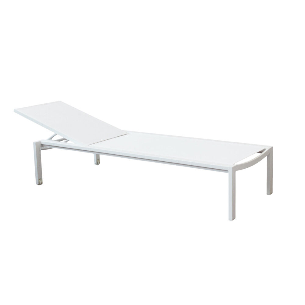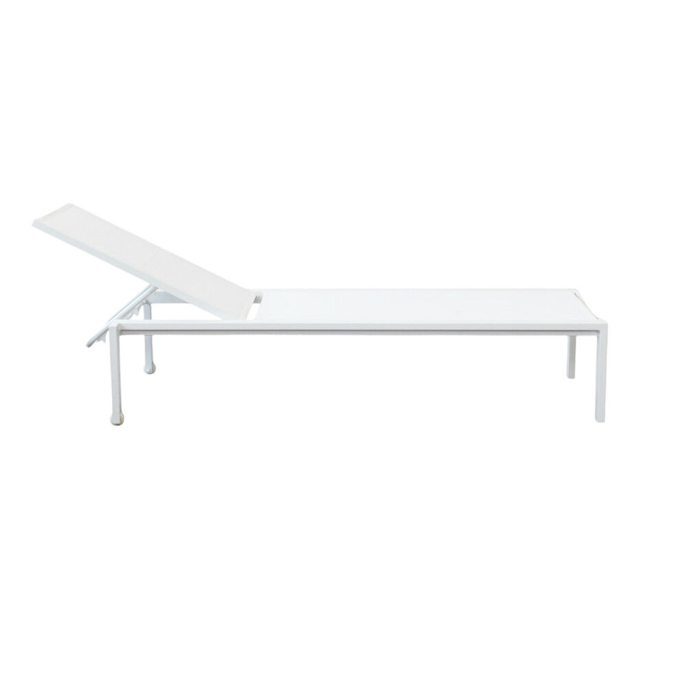 Elegantna vrtna ležaljka BELFAST s aluminijskom konstrukcijom i površinom od textilena u bijeloj boji. Lagana, izdržljiva i naslagiva. Minimalna narudžba: 4 kom.