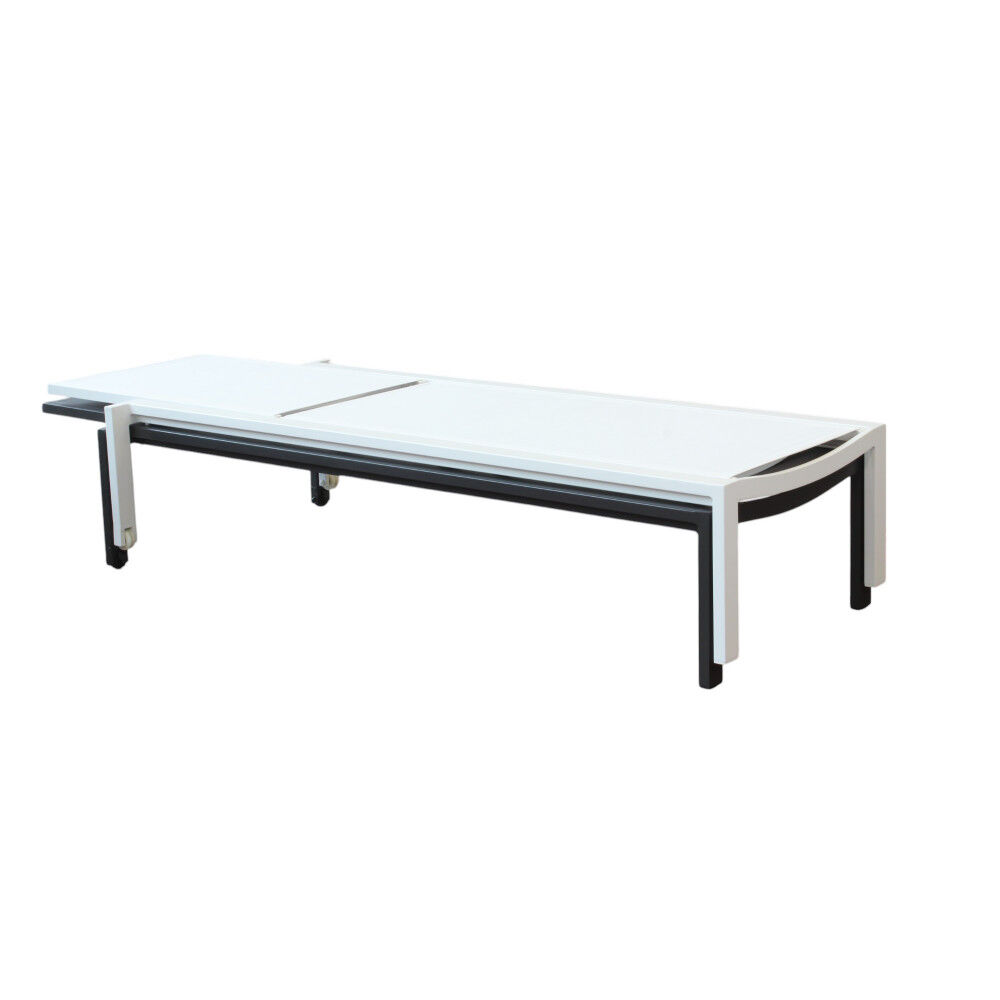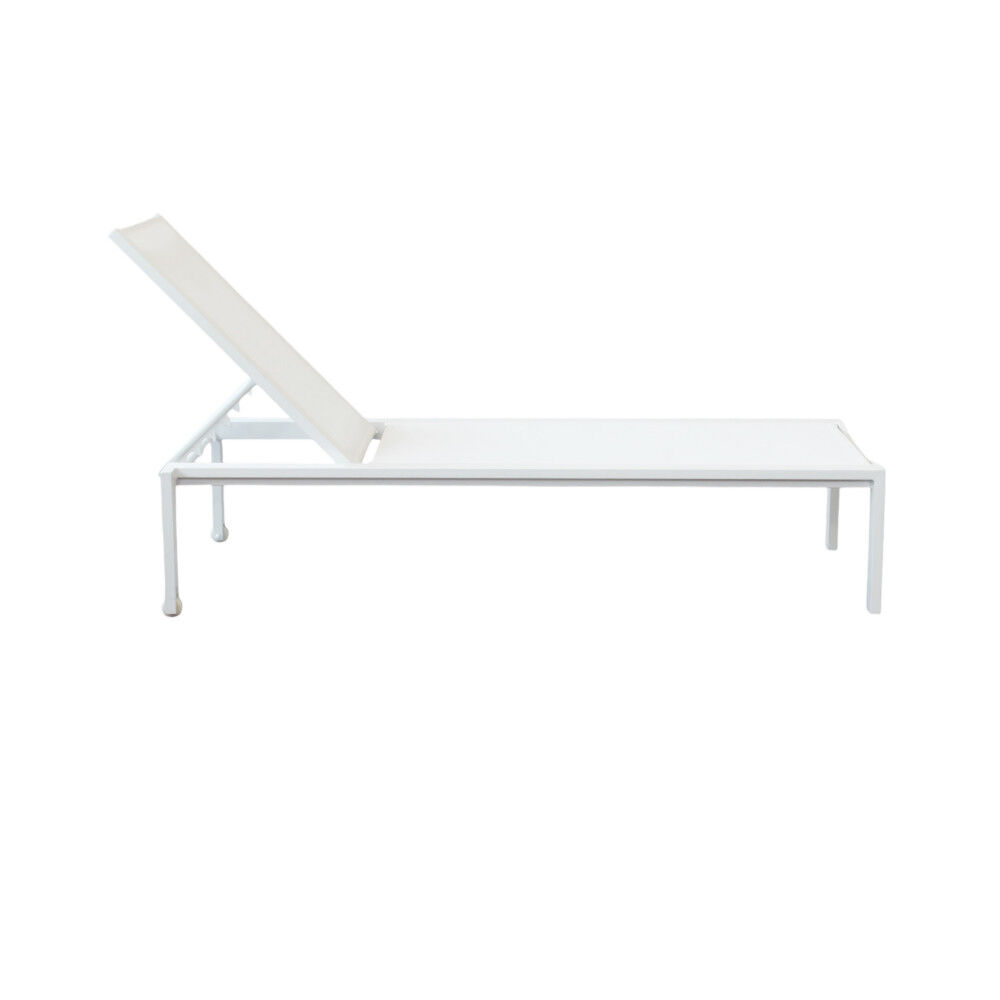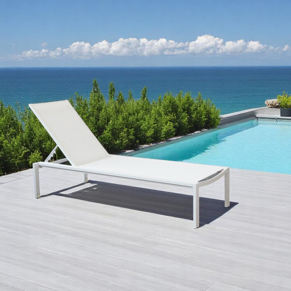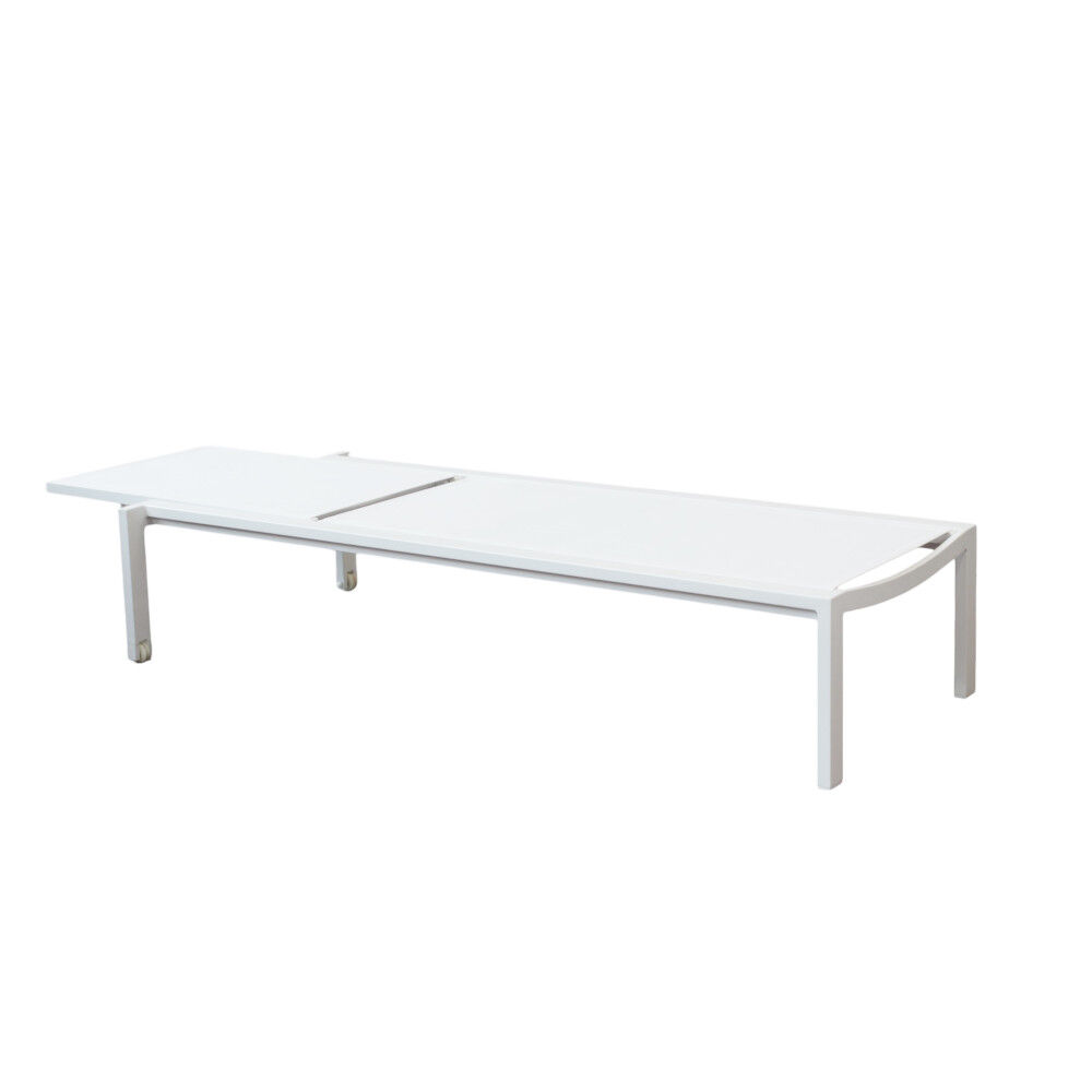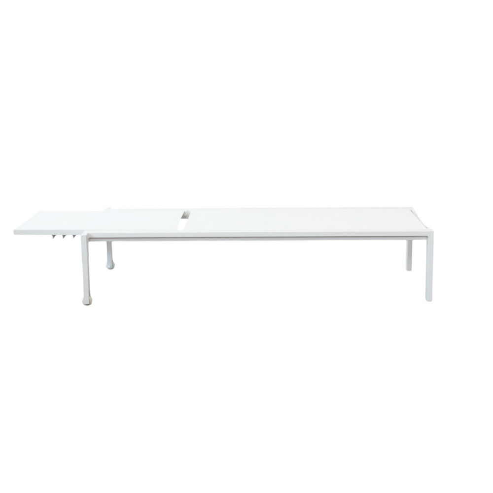 Elegantna vrtna ležaljka BELFAST s aluminijskom konstrukcijom i površinom od textilena u bijeloj boji. Lagana, izdržljiva i naslagiva. Minimalna narudžba: 4 kom.