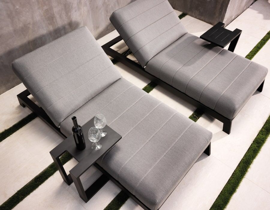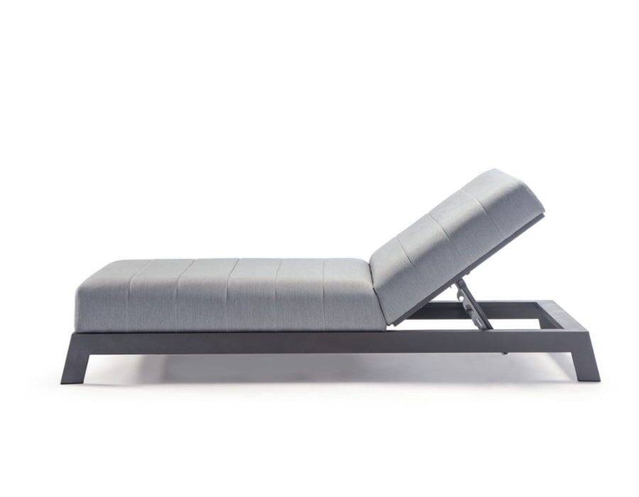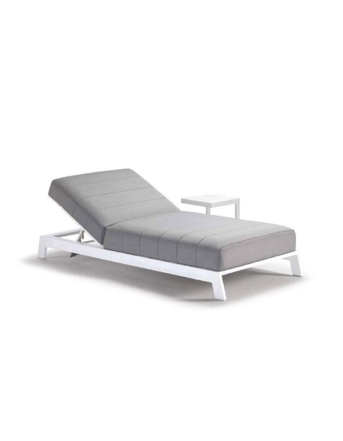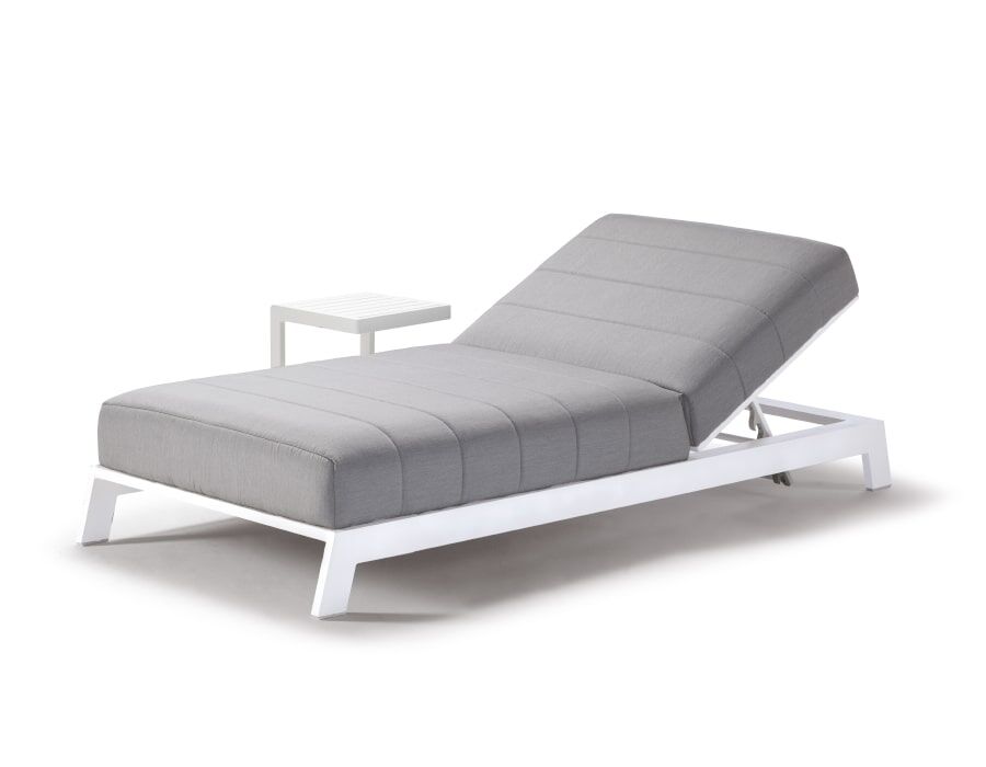 Dvobojni aluminijski okvir, bijeli i antracit. Brzo suha pjenasta poliuretanska podloga za odvodnju pjene ispunjena Sunbrella krpom. Ležaljka je pogodna za unutarnju i vanjsku upotrebu. Minimum, koji postaje najveći komfor: jastuk od poliuretanske pjene pričvršćen je na aluminijski okvir. Jastuk je podstavljen i podijeljen na dva odvojena komada, međusobno spojena patentnim zatvaračem i jakim šavom izrađenim od Sunbrella tkanine.