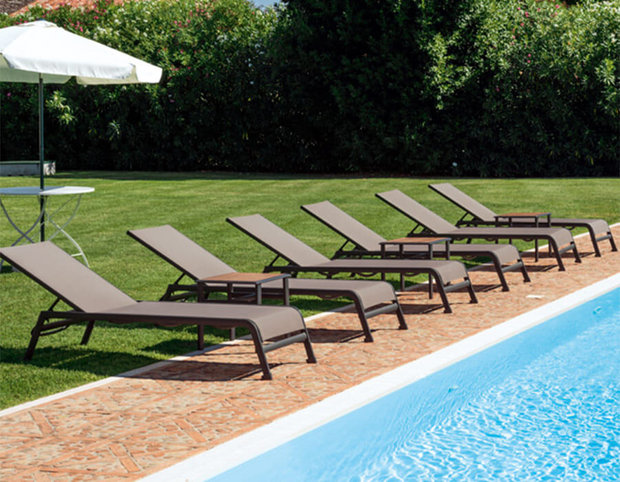 Aluminijski okvir obojan praškastom poliesterskom bojom, PVC platno dvostruko prošiveno. Naslon za leđa u 5 položaja. Vrlo udobna ležaljka za terase, balkone, saune, uz bazen i za plažu.