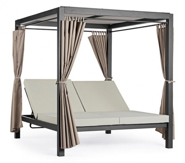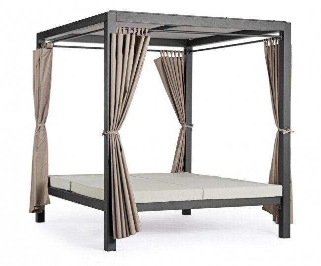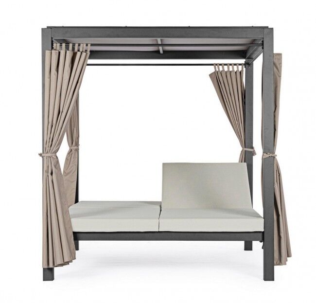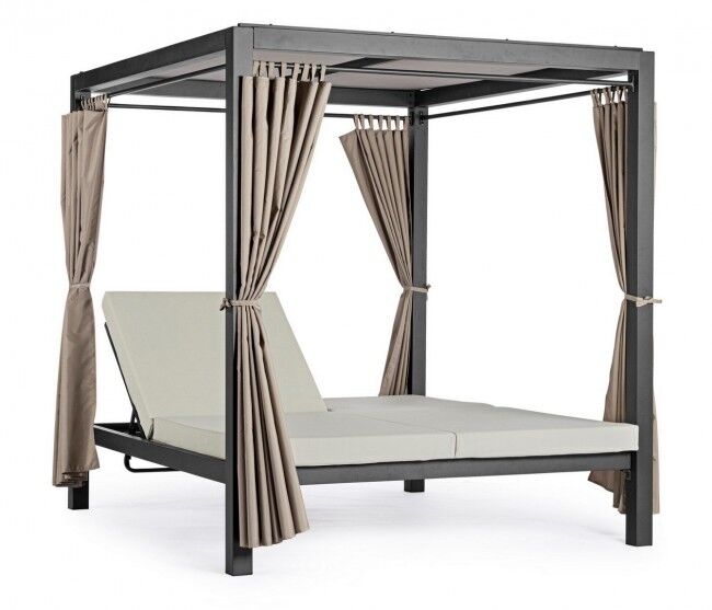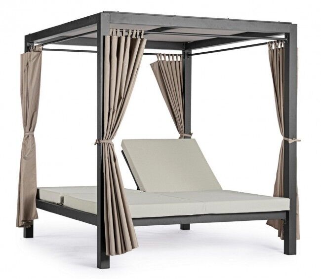 Ležaljka DAYBED DREAM u antracit boji , izrađena od aluminija praškasto lakirana, s podesivim naslonima i bočnim zavjesama. Udobna i izdržljiva ležaljka za dvoje, s uklonjivim jastucima i punjenjem koje se brzo suši. Marka Bizzotto.