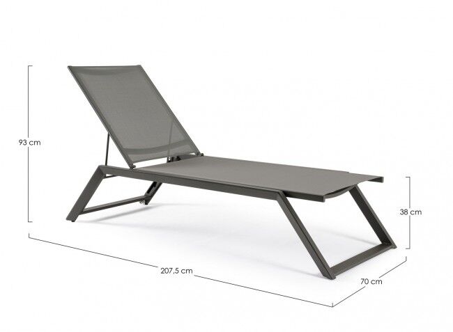 Ležaljka KAYLAN s kotačima u antracit boji CX23 je elegantan i funkcionalan komad vanjskog namještaja, namijenjen za opuštanje na otvorenom. Ležaljka je dizajnirana za optimalnu udobnost i trajnost, s aluminijskom konstrukcijom premazanom poliesterskim prahom, te sjedalom i naslonom od tekstilena 1x1.