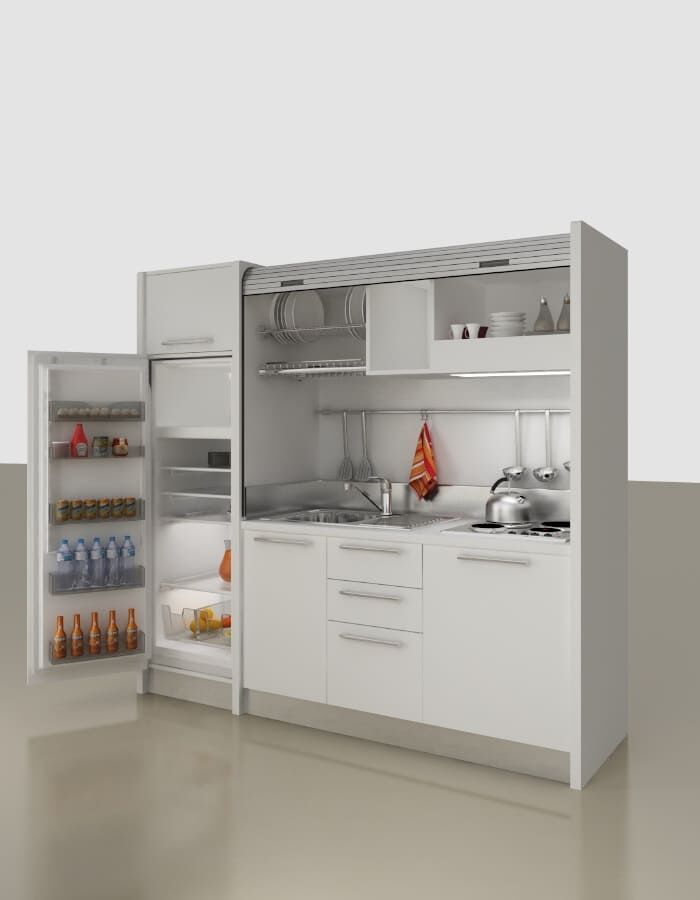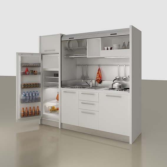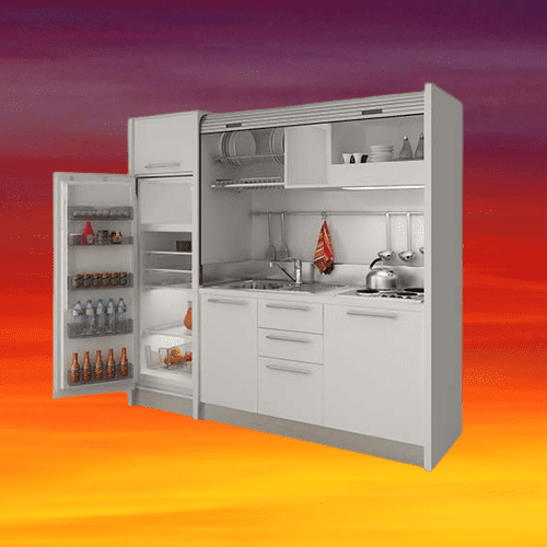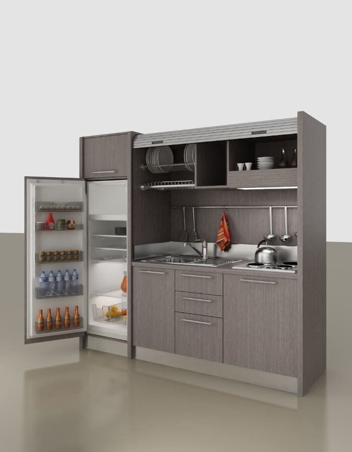 Tražite li potpuno funkcionalnu kuhinju? Monoblock Mini Kitchen K-120 dostupan je u unaprijed definiranim modulima koje možete instalirati po želji. Odaberite veličinu, raspored, funkciju i oblik kuhinje iz snova. Monoblok mini kuhinja K-120 sa kliznom zaklopkom širine 221,4 cm, jedan od najvećih proizvoda proizvođača Mobilspazio , zajedno sa svim osnovnim uređajima: