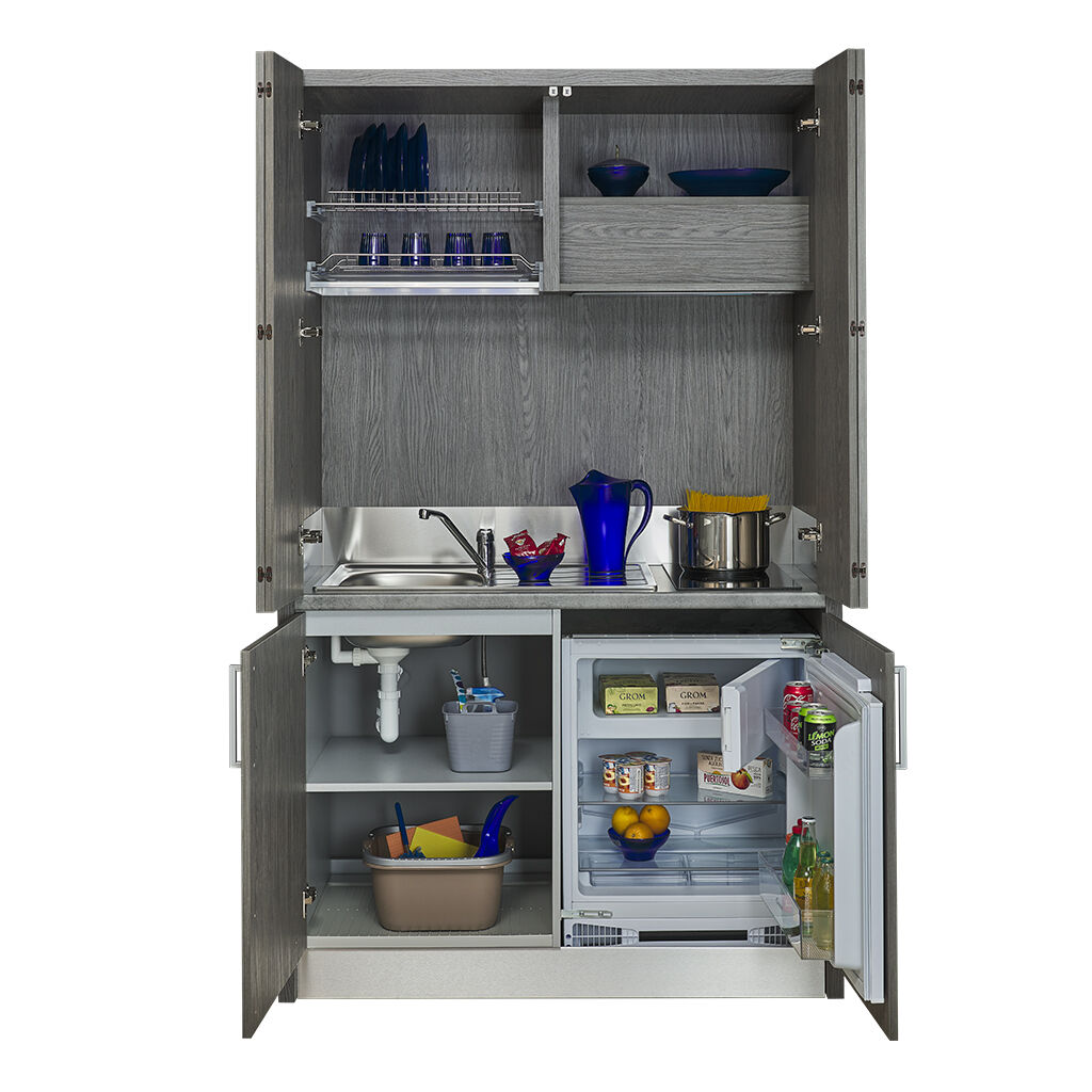 Tražite li potpuno funkcionalnu kuhinju? Monoblok mini kuhinja K-143 dostupna je u unaprijed definiranim modulima koje možete instalirati po želji. Odaberite veličinu, raspored, funkciju i oblik kuhinje iz snova. Monoblok mini kuhinja K-143 sa širinom vrata 127,6 cm, jedan od najmanjih proizvoda proizvođača Mobilspazio , zajedno sa svim osnovnim uređajima: