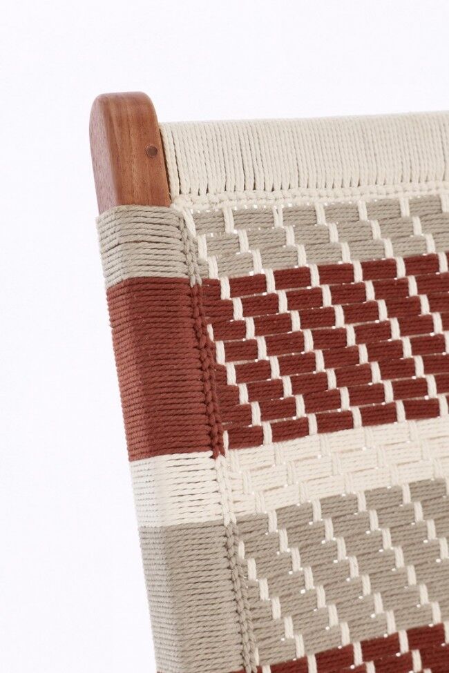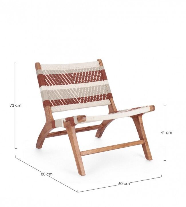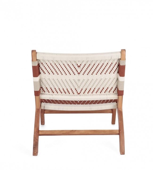Fotelja Mirielle je estetski savršen komad namještaja koji spaja prirodne i moderne elemente. Struktura mu je izrađena od visokokvalitetnog tikovine, koja je poznata po svojoj izdržljivosti i otpornosti na razne vremenske uvjete. Sjedalo i naslon izrađeni su od pletenog užeta koje sadrži 65% pamuka i 35% poliestera, što osigurava udobnost i izdržljivost. Fotelja je obrađena bojom na bazi vode koja osigurava dodatnu zaštitu drva i prirodan izgled namještaja. Ova elegantna boja naglašava prirodnu teksturu tikovine i daje joj dodatnu otpornost na vanjske utjecaje. Naslonjač Mirielle idealan je za unutarnje i vanjske prostore, jer svakom okruženju unosi dašak elegancije i prirodne ljepote.