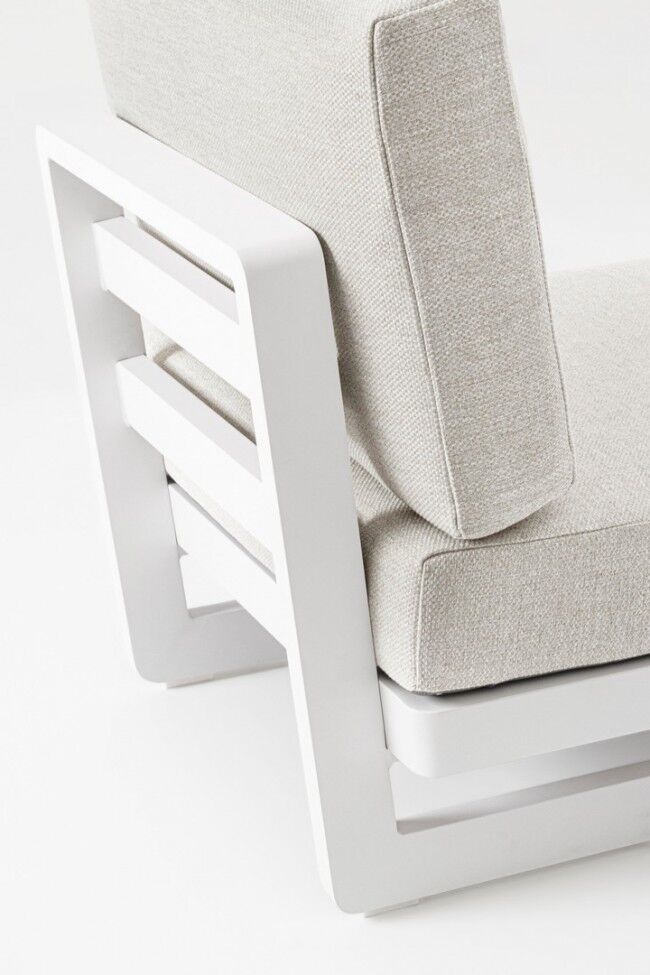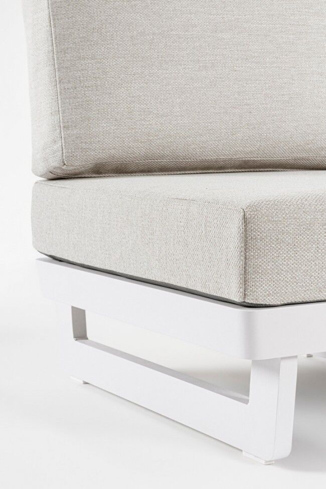 Modularna vrtna fotelja INFINITY white WG20 spaja eleganciju i udobnost, s vodootpornim jastucima, modularnim dizajnom i aluminijskom konstrukcijom za dugotrajnu vanjsku upotrebu.