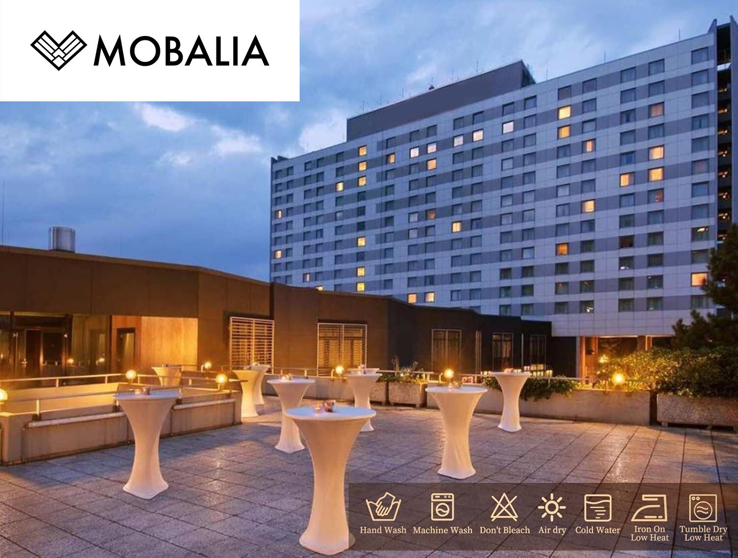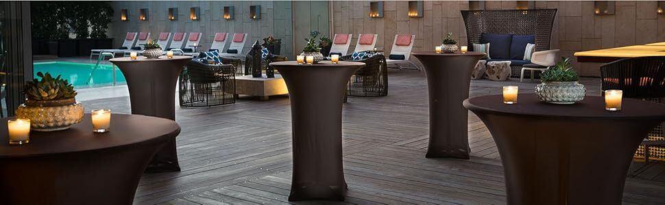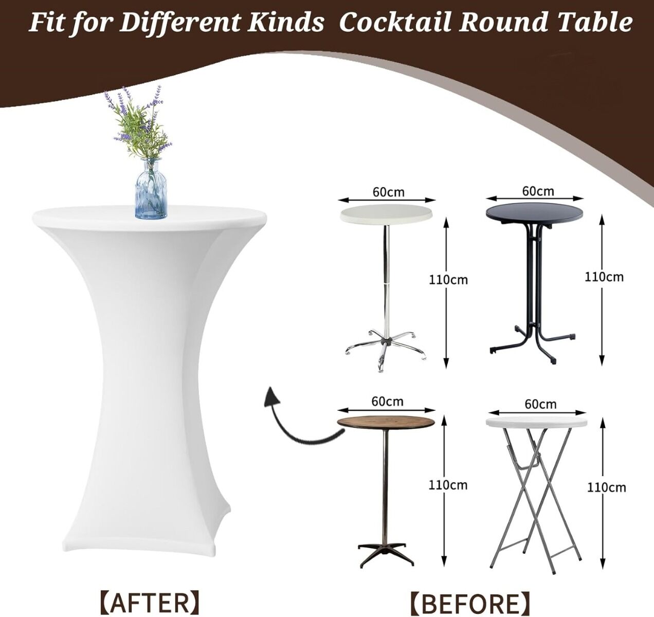 Elastičen prt za visoko barsko mizo iz kakovostnega spandexa, primeren za dogodke in catering. Odporen na gubanje, trpežen, pralen in enostaven za vzdrževanje, ponuja eleganten in profesionalen videz, idealen za poroke, rojstne dneve, bankete in poslovne dogodke.