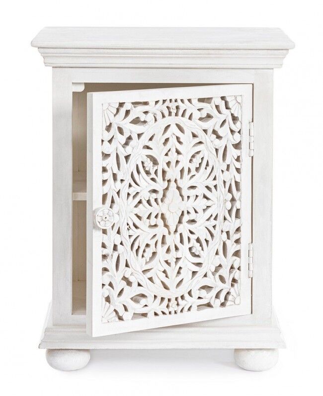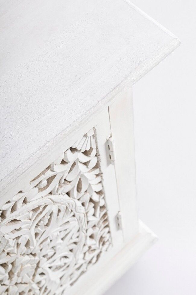 **ALINTA Noćni ormarić** **Opis proizvoda:** ALINTA Noćni ormarić je izuzetan komad namještaja koji spaja funkcionalnost s estetskom privlačnošću. Izrađen je od visokokvalitetnog drva manga koje osigurava izdržljivost i dugovječnost. Vrhunac ovog komada su ručno umetnuta vrata koja svakoj spavaćoj sobi daju jedinstven i sofisticiran izgled. **Značajke proizvoda:** - **Materijal:** Struktura od drveta manga, naslon za leđa od MDF-a. - **Vrata:** Ručno brušeno s jedinstvenim uzorkom. - **Završna obrada:** Završna obrada s blago starinskom bijelom akrilnom bojom koja dodaje dašak elegancije i rustikalnog šarma. - **Korištenje:** Idealno za odlaganje knjiga, noćnih svjetiljki ili drugih sitnica koje želite imati pri ruci pored kreveta. ALINTA ormarić nije samo praktičan dodatak vašoj spavaćoj sobi, već i stilski element koji doprinosi toplom i ugodnom ambijentu vašeg doma.