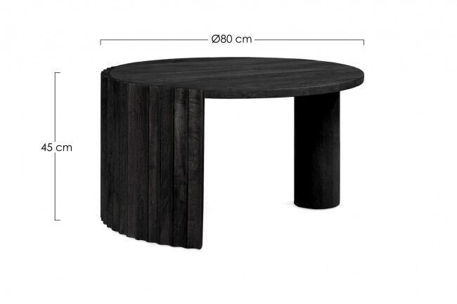 Okrugli stolić za kavu ORISSA D80 crni od drva manga s nitroceluloznim premazom i rezbarenim detaljima. Promjer 80 cm, visina 45 cm. Idealno za moderan i prirodan ambijent.