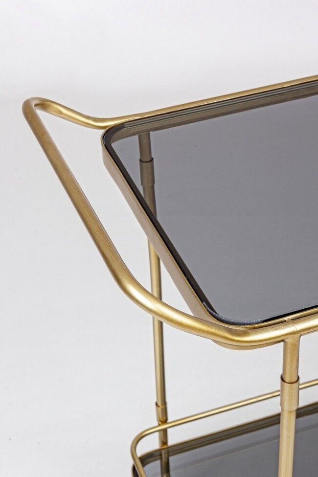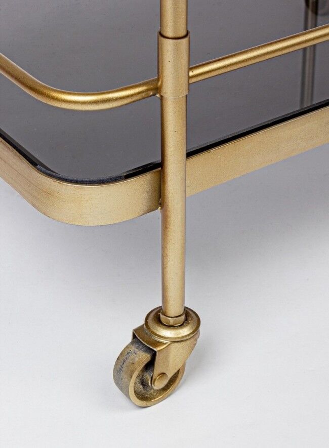 ORABEL kolica za posluživanje su elegantan komad namještaja, dizajniran u vintage stilu , koji spaja profinjenu estetiku i funkcionalnost. Njegova čelična konstrukcija presvučena je praškastim epoksidnim premazom koji osigurava dugotrajnu izdržljivost i otpornost na habanje. Površine su izrađene od kaljenog stakla koje daje moderan štih i dodatnu čvrstoću. Ova kolica za posluživanje savršena su za korištenje u blagovaonicama, dnevnim sobama ili na terasama jer nude elegantan način posluživanja hrane i pića.