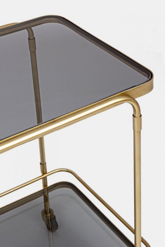 ORABEL kolica za posluživanje u vintage stilu, s čeličnom konstrukcijom i površinama od kaljenog stakla. Elegantan i funkcionalan komad za posluživanje hrane i pića, pogodan za unutarnje prostore i terase.