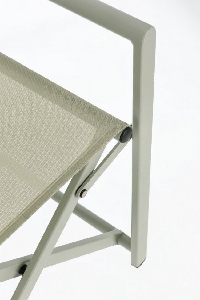 Elegantna redateljska stolica TAYLOR BREEZE , izrađena od aluminija i Textilene materijala sa toplinski zavarenim šavovima , sklopiva i otporna na vremenske uvjete. Idealan izbor za unutarnje i vanjske prostore.