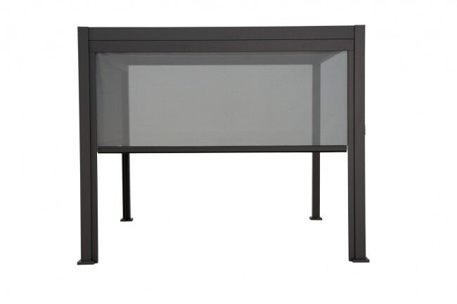 Rolo tenda za pergolu OCEAN u antracit boji, izrađena od aluminija i textilene tkanine, pruža zasjenjenje i zaštitu.