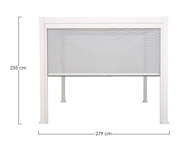 **Opis proizvoda: Pergola Ocean Stran 3M bijela** Pripremite svoj vanjski prostor za udobnost i eleganciju s Pergola Ocean Stran. Ova moderna i funkcionalna pergola dizajnirana je za zaštitu od sunca i omogućuje ugodan boravak na otvorenom. **Značajke proizvoda:** 1. **Konstrukcija**: Ocean Side pergola ima čvrstu i izdržljivu konstrukciju izrađenu od aluminija obloženog prahom, koji osigurava otpornost na vremenske uvjete i koroziju. Aluminij je presvučen poliesterom za dodatnu zaštitu i dobar izgled. 2. **Tekstil**: Pergola ima visokokvalitetna sjenila izrađena od 2X2 tekstila, koja učinkovito štite od sunca i pružaju ugodnu zasjenu i zaštitu. 3. **Funkcionalnost**: Paravan za pergolu se ručno izvlači i sprema kroz utor na donjoj letvi. To olakšava podešavanje zasjenjenja prema potrebama i trenutnim vremenskim uvjetima. 4. **Prilagodljivi nastavak**: Pergola uključuje podesivi nastavak koji vam omogućuje podešavanje duljine sjenila za još veću fleksibilnost i udobnost. 5. **Skrivena rola**: Zatvaranje roleta je sustav roleta koji je skriven, što pergoli daje čist i moderan izgled, a istovremeno štiti mehanizam od vremenskih nepogoda. 6. **Vijci**: Svi vijci izrađeni su od nehrđajućeg čelika, što dodatno osigurava trajnost i otpornost na koroziju. 7. **Sastavljanje**: Pergola je dizajnirana za jednostavno sastavljanje, što znači da je možete brzo i jednostavno postaviti u svoj vanjski prostor. Postavite pergolu Ocean Side na mjesto gdje želite stvoriti ugodan kutak za opuštanje, druženje ili objedovanje na otvorenom. Svojim modernim dizajnom i vrhunskom kvalitetom ova će pergola obogatiti svaki vanjski ambijent.