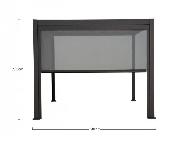 Rolo tenda za pergolu OCEAN u antracit boji, izrađena od aluminija i textilene tkanine, pruža učinkovito zasjenjenje i zaštitu.