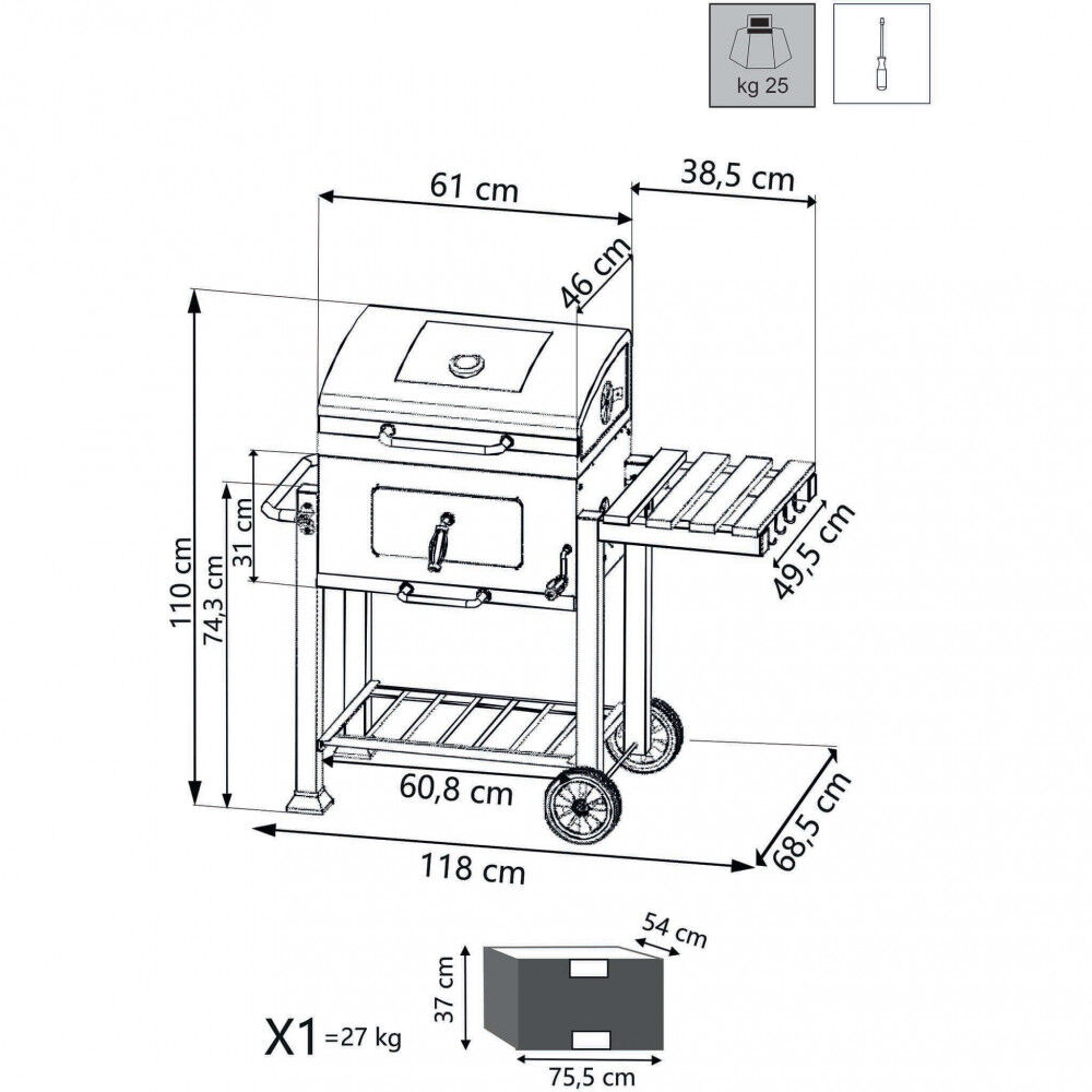 CRNO obojena čelična konstrukcija isporučuje se s 2 rešetke i otvaračem za boce sklopivi čelični bočni poklopac police s podešavanjem temperature Dimenzije: 118 x 56 x 110 h cm