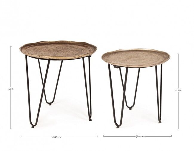 Okrugli stolići za kavu AMIRA X73 SET2 - prekrasan vintage stolić za kavu od aluminija i čelika sa starinskom završnom obradom koji dodaje eleganciju i karakter vašem domu.